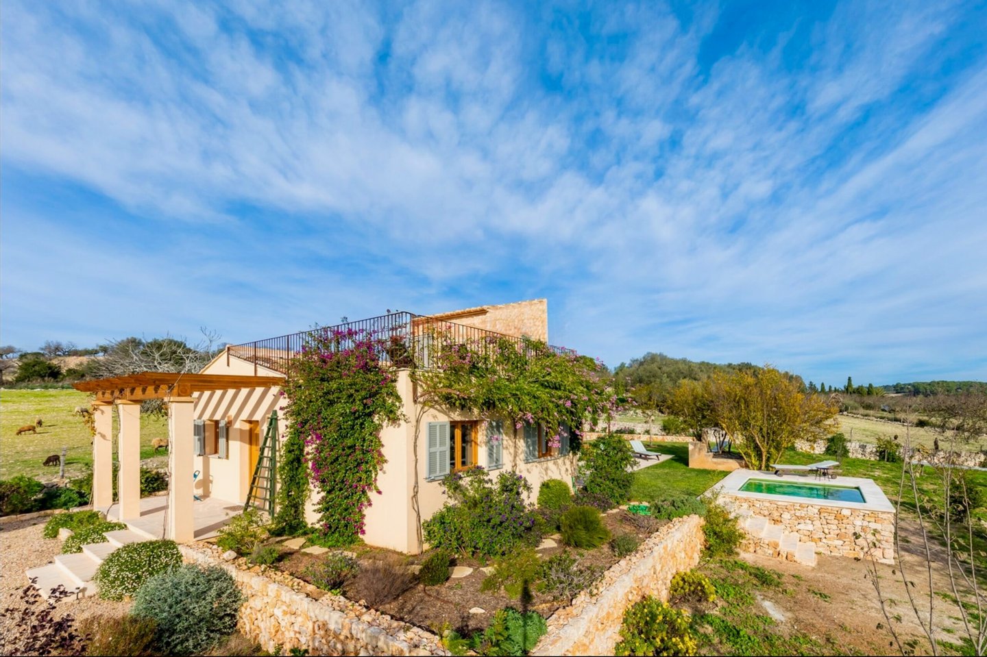 Im Herzen Mallorcas erhebt sich Casa Sa Torre als wahres Schmuckstück – eine gelungene Verbindung von traditioneller mallorquinischer Architektur und modernem Wohnkomfort. Das Anwesen vereint Charme, Privatsphäre und luxuriöse Ausstattung und bietet dabei einen traumhaften Panoramablick über das malerische Dorf Montuïri und die umliegende Landschaft.