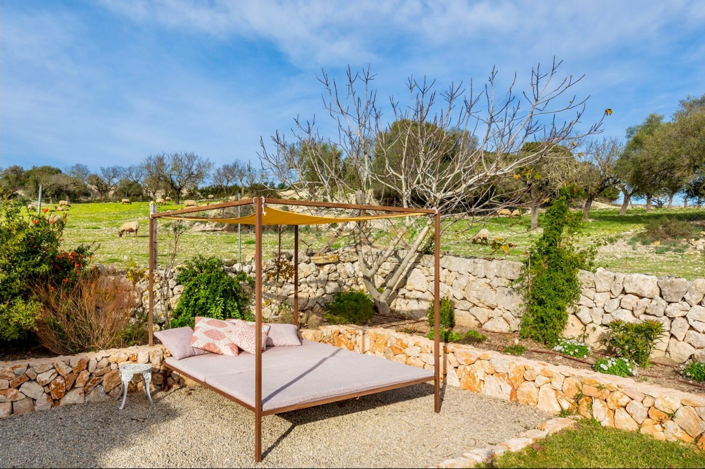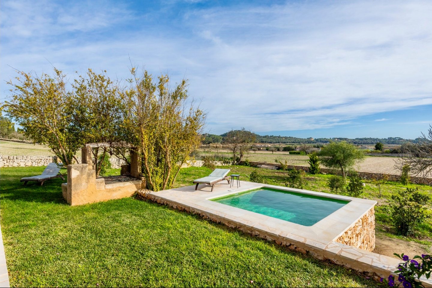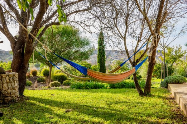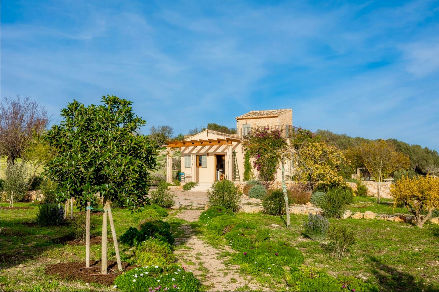 Nur wenige Gehminuten vom Ortskern entfernt, genießen Sie die Ruhe des Landlebens und gleichzeitig die Nähe zu Geschäften, Restaurants, Cafés und allen Einrichtungen des täglichen Bedarfs. Die Umgebung ist geprägt von sanften Hügeln, Feldern und Mandelhainen – perfekt für Spaziergänge, Wanderungen oder Radtouren.