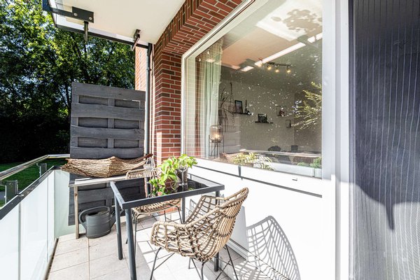 Das Wohnzimmer wiederum wird durch den gemütlichen Balkon, der in 2022 erneuert wurde, zum neuen Lieblingsplatz.