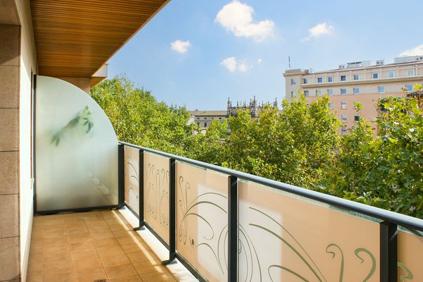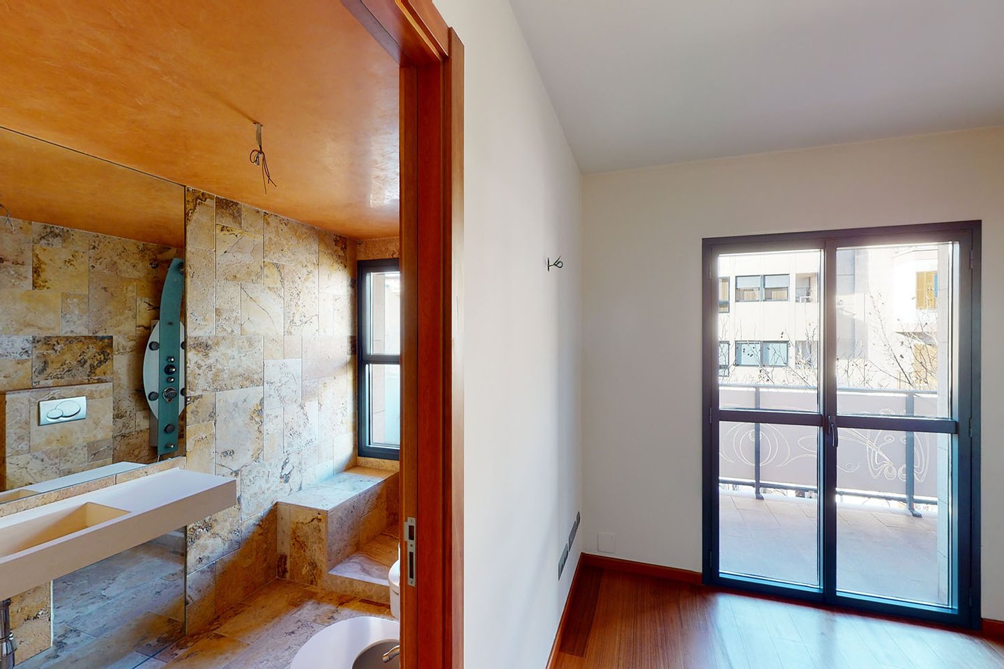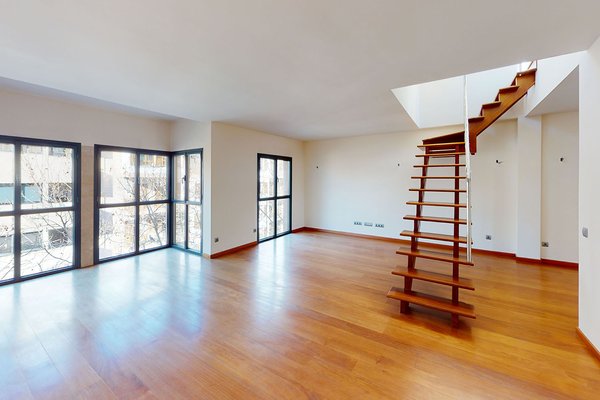 Zur Ausstattung gehören durchgängiger Parkettboden, maßgefertigte Einbauschränke und hochwertige Tischlerarbeiten aus Kirschholz. Isolierverglaste Fenster mit Schallschutz, Aluminiumrahmen und eine zentrale Klimaanlage sorgen für ein angenehmes Raumklima das ganze Jahr über.