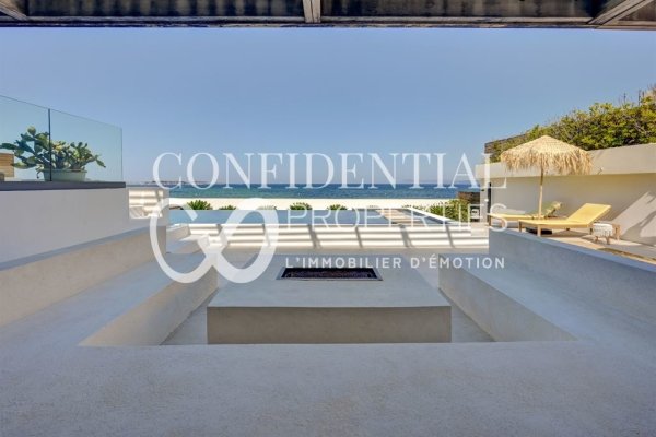 Ideal am Wasser gelegen, bietet dieses Anwesen einen außergewöhnlichen Panoramablick auf die Sanary Bay. Nur wenige Minuten vom charmanten Hafen von Le Brusc entfernt, verbindet diese zeitgenössische Villa mit etwa 200 m² sauberen Linien und einer erstklassigen Lage und bietet direkten Zugang zu einem abgelegenen und unberührten Strand.