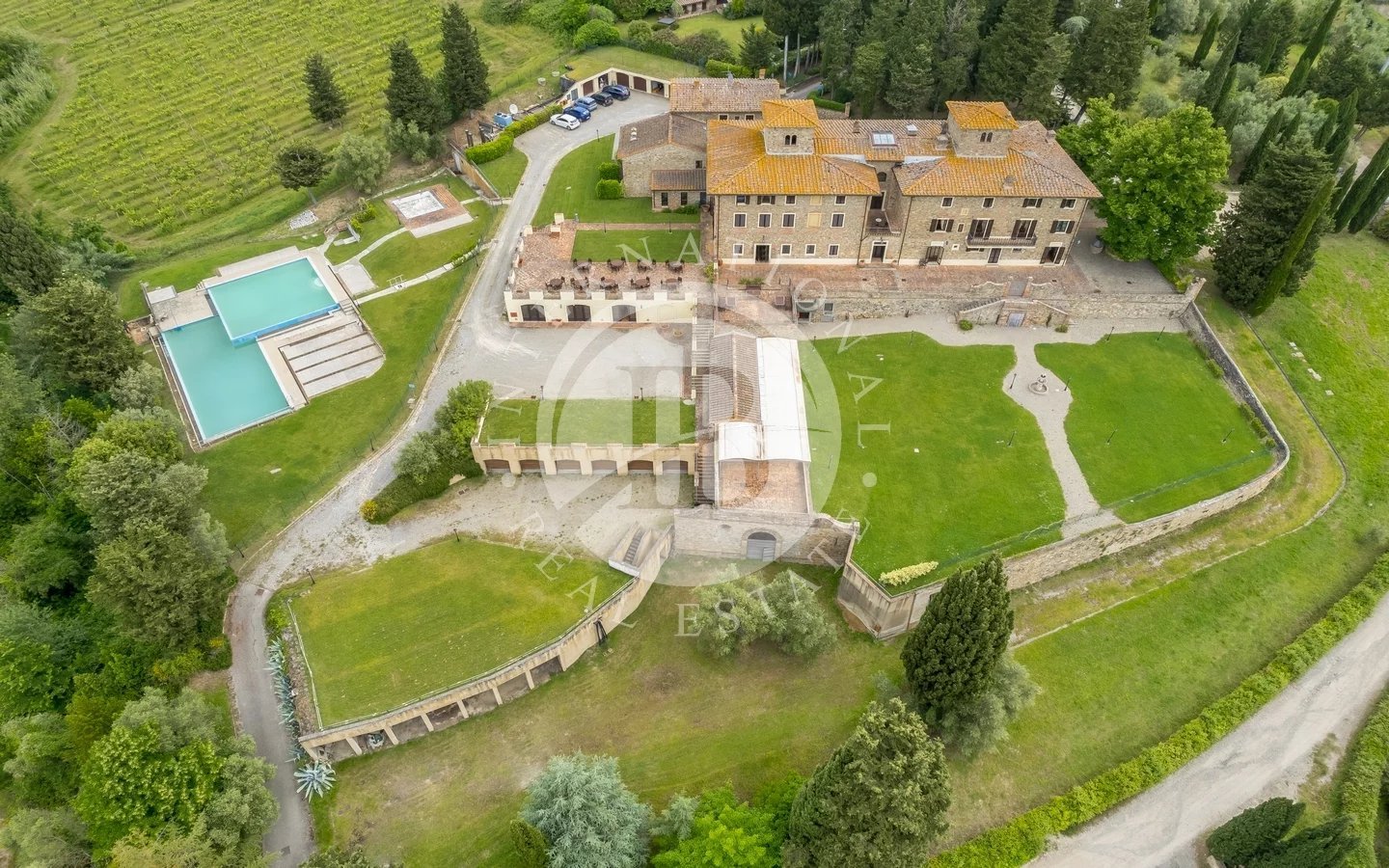 Die Villa verfügt auch über ein traditionelles toskanisches Restaurant, einen Wein- und Olivenölverkostungskeller, einen großen privaten Parkplatz und die Möglichkeit, einen Hubschrauberlandeplatz zu bauen. Mit seiner strategischen Lage, nur eine kurze Autofahrt von Florenz und Siena entfernt, und seinem historischen Charme stellt dieses Anwesen eine der faszinierendsten Möglichkeiten im Herzen der Toskana dar.
