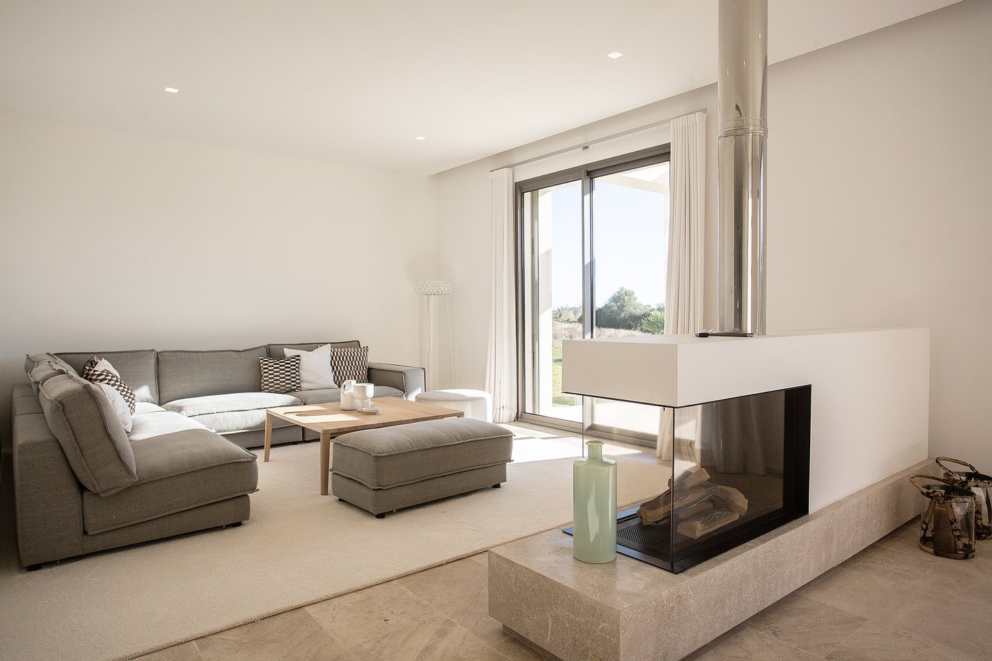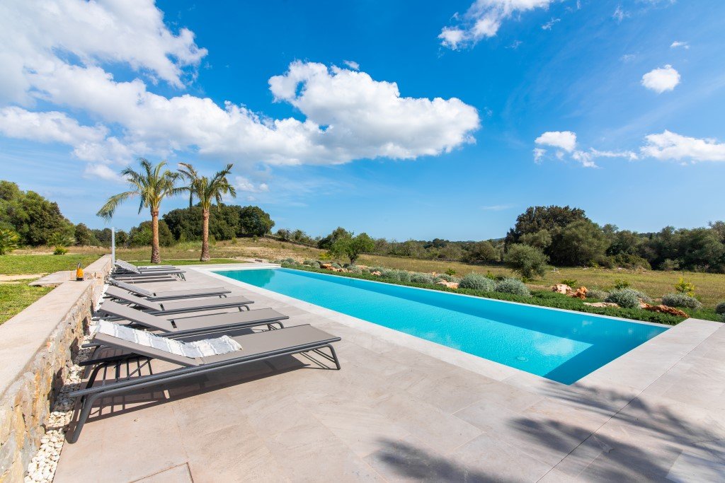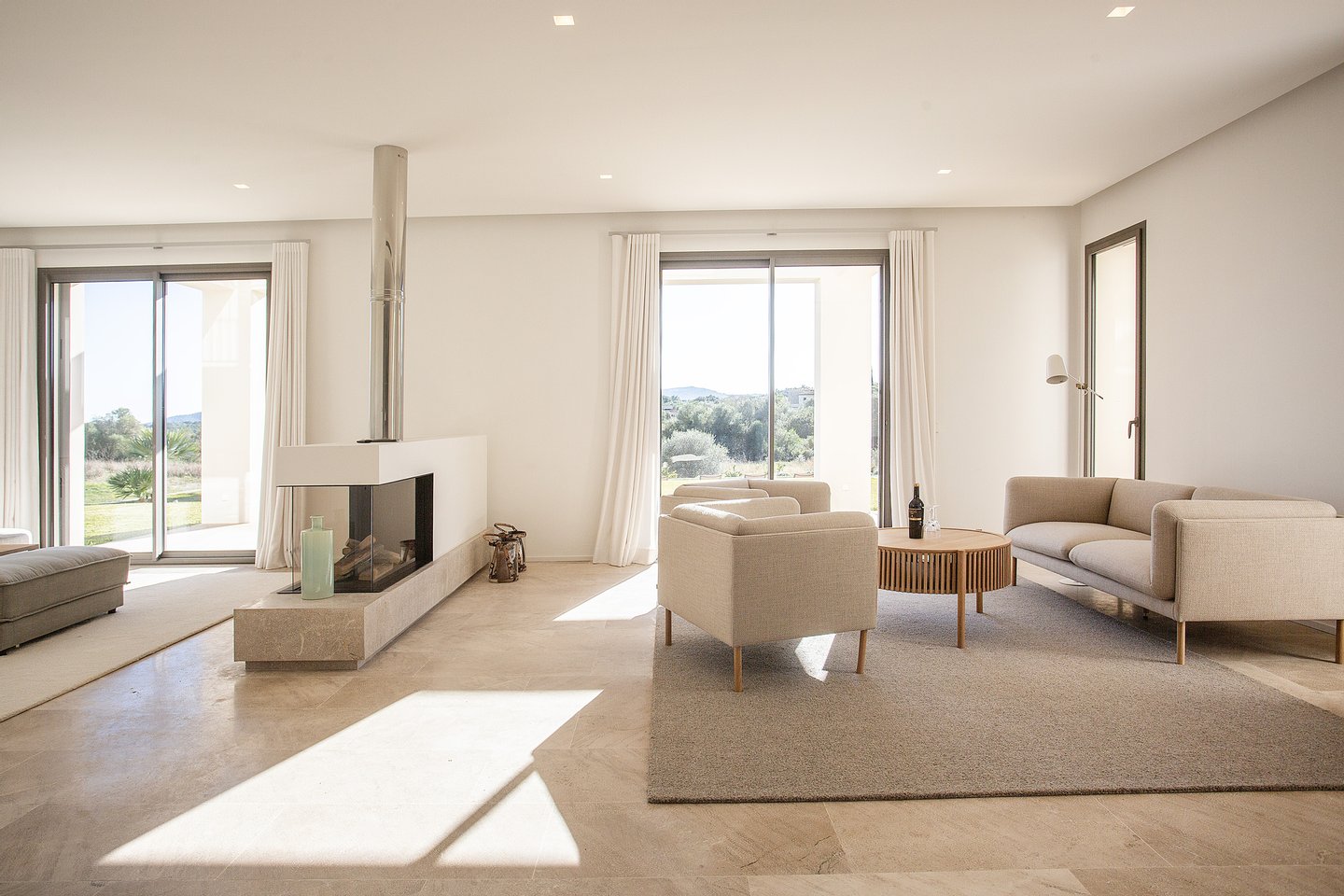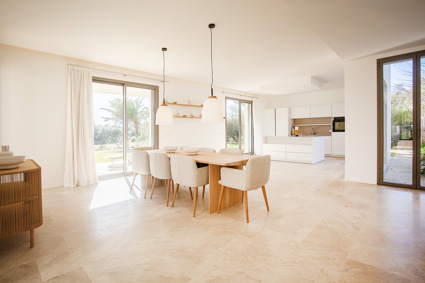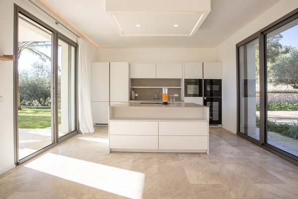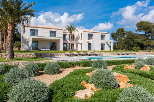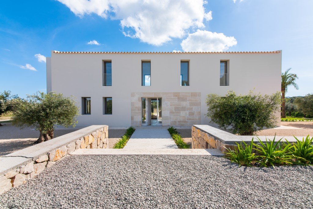 Luxuriöse Neubaufinca bei Artá.Unter Verwendung von hochwertigen Baustoffen ist dieses Anwesen gebaut worden und vereint  moderne  Bauelemente mit traditionellen Materialien und neuester Haustechnik. Eine moderne Raumaufteilung in symetrischer Anordnung mit grossen Glasfronten und grosszügigen Dimensionen verteilen sich auf zwei Stockwerke.Im Untergeschoss führt ein Eingangsbereich mit doppelter Raumhöhe zu dem Esszimer und offenen Küche der Marke SieMatic. Dem Essbereich und Küche vorgelagert ist eine grosse überdachte Terrasse. Die Versorgungsräume sind durch einen seperaten Eingang vom Parkplatz bequem zu erreichen und ein Gästebad ist vorhanden.Auf der gegenüberliegenden Seite des Eingansbereiches befindet sich das Wohnzimmer mit Kamin und einem Bereich der sich vom Wohnzimmer, als weiteres Schlafzimmer oder Büro, abtrennen lässt, sowie ein weiteres Badezimmer.Im Obergeschoss liegen zwei Hauptschlafzimmer mit Ankleide und Bad en-suite, eines davon mit Terrasse und zwei weitere Schlafzimmer mit Bädern en-suite.Im Aussenbereich befindet sich ein Parkplatz , Terrassen sowie angelegte Gärten und der 70m2 grosse Pool.Auf einem Teil der Finca ist ein Olivenhain angepflanzt.Die Finca ist gur erreichbar und liegt in einer der gefragtesten Bereichen von Artà und auch die umliegenden Häuser entsprechen dem luxuriösen Profil.
