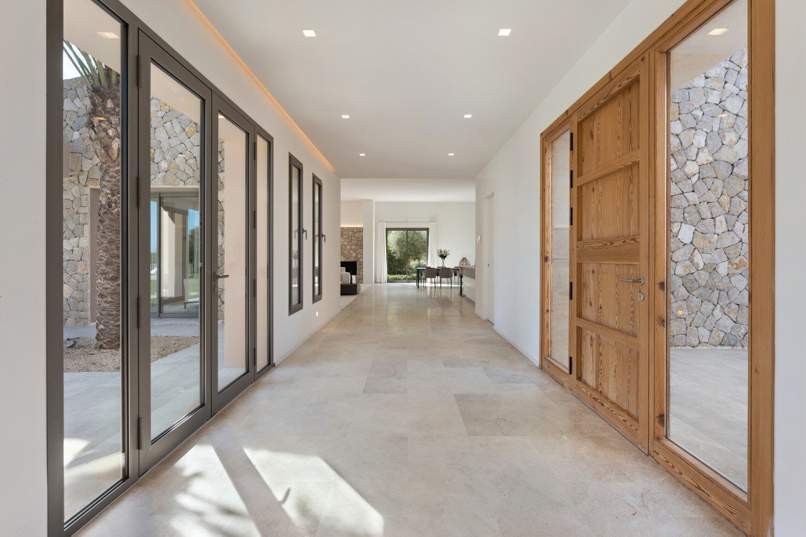 Traumhafte Finca bei Canyamel mit fantastischem Weitblick auf die umliegende Landschaft.Bei dieser Finca handelt es sich um einen Neubau zum Erstbezug. Das Haus ist mit höchstwertigen Materialien gebaut und mit modernen Elementen und Smart Home Technologie ausgestattet, sodass am Ende eine luxuriöse, moderne Finca im mediterranen Stil entstanden ist.Im Erdgeschoss bietet das Haus einen hellen Eingangsbereich mit bodentiefen Panoramafenster, zu dessen Rechten sich ein Wohn-Esszimmer mit bodentiefen Fenstern und Türen und entsprechender groszügiger Raumhöhe und eine offene Küche und ein Wirtschaftsraum befindet,auf der Linken Seite setzen sich die Wirtschaftsräume, ein Gästebad und vier Schlafzimmer mit Bad en suite fort. Dieser Seitenflügel hat einen Innenhof und einen halboffenen Raum welcher als Mehrzweckraum oder Bibliothek oder auch als zusätzliches Schlafzimmer genuztzt werden kann.Das Haus bietet im Außenbereich einen schön angelegten Garten, einen Innenhof , überdachte Terrasse des Wohnbereichs, ein großen Pool mit Sonnenterrasse sowie einen Parkbereich für mehrere PKW. und eine Garage. Das gesamte Haus ist mit Wegen umrandet wodurch man das Haus bequem umgehen kann.Die Finca ist gut erreichbar und liegt im schönsten sowie gefragtesten Fincagebiet und auch die umliegenden Häuser entsprechen dem luxuriösen Profil.