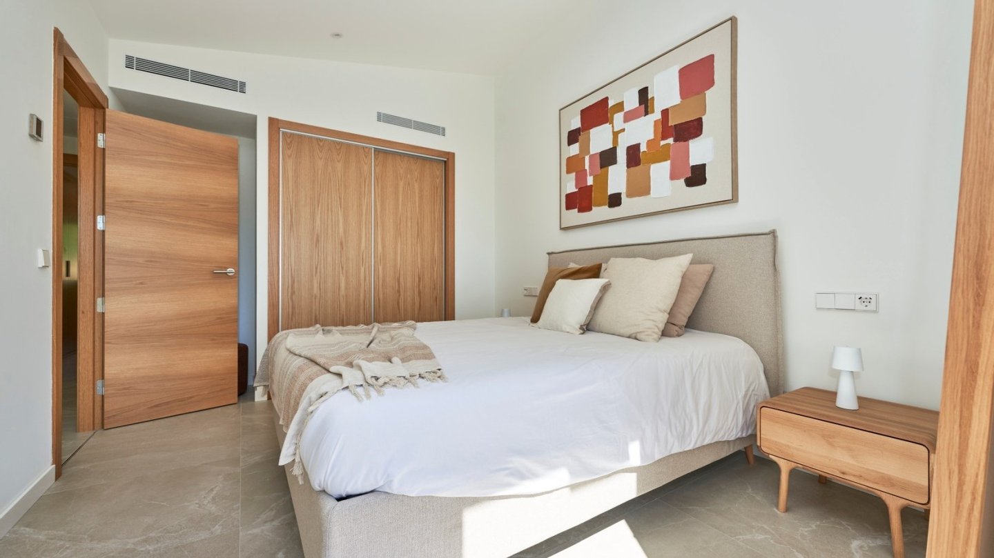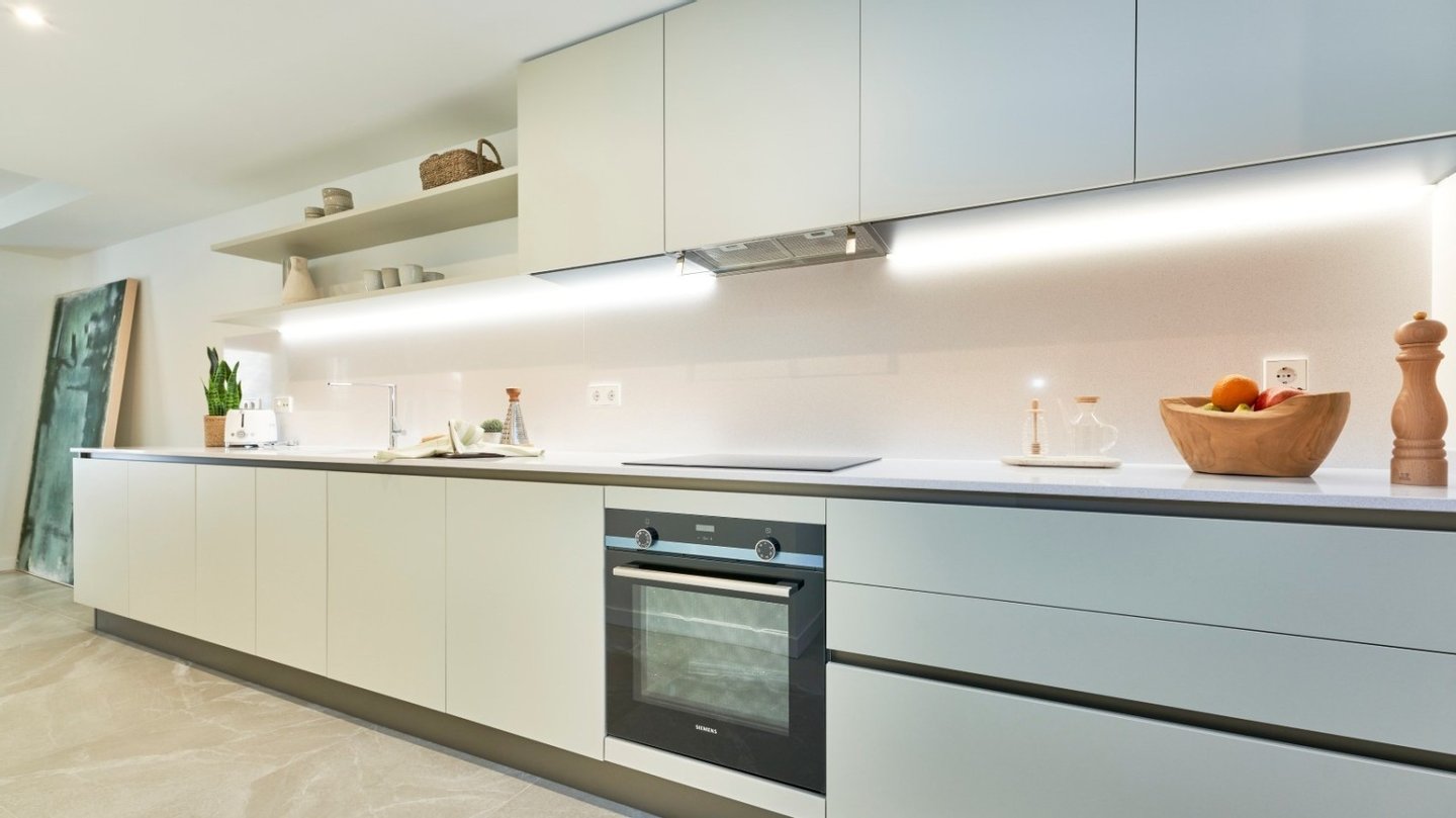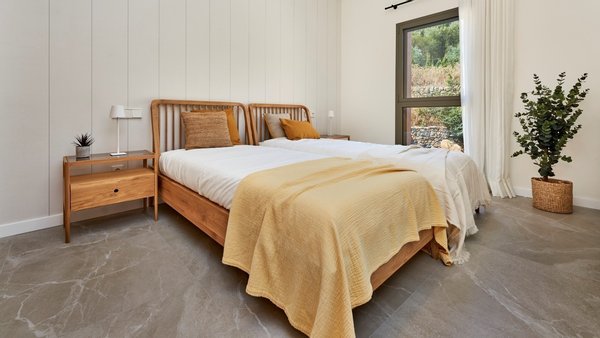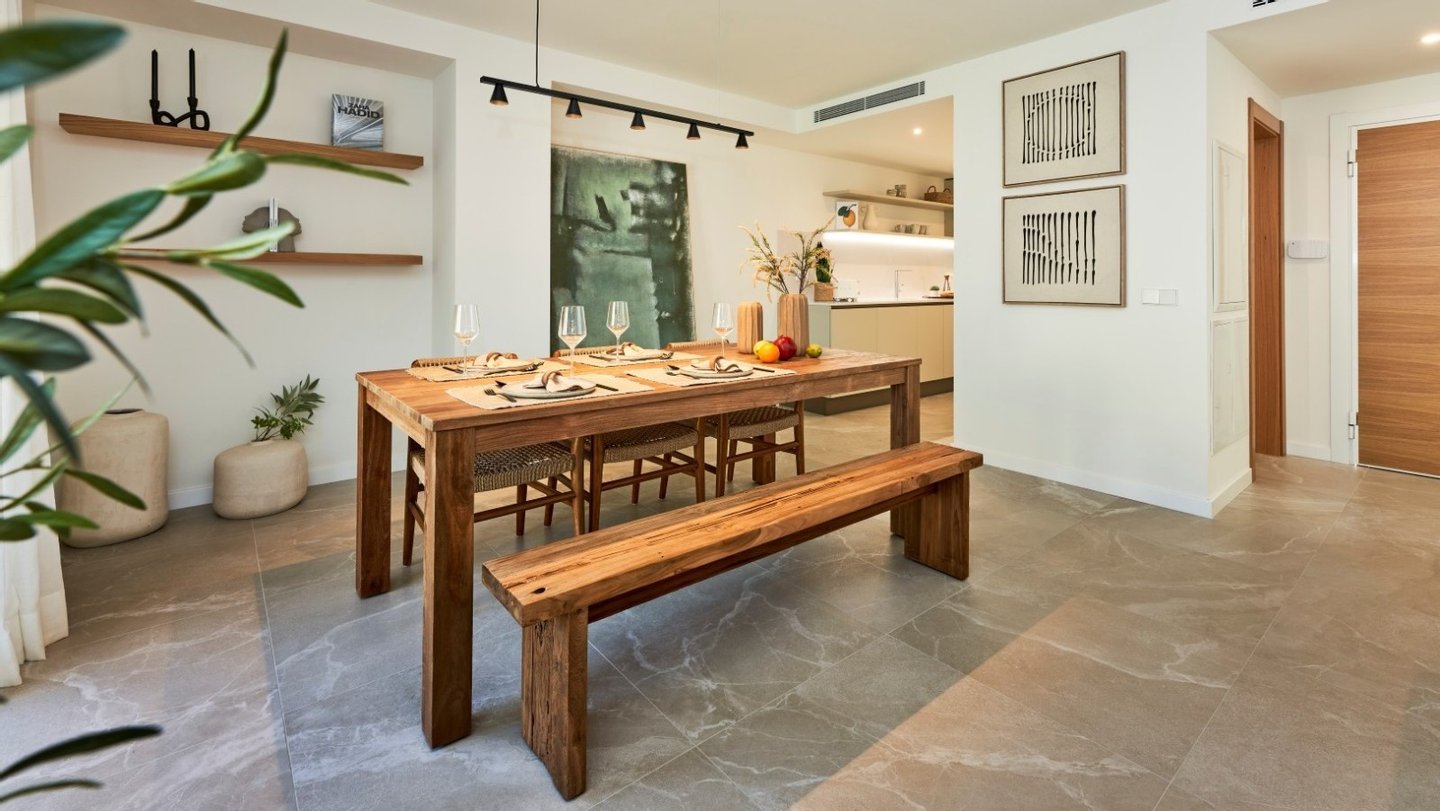 Das Haus erstreckt sich über zwei Etagen und bietet drei Schlafzimmer, zwei Bäder (eines davon en suite) sowie ein zusätzliches Gästebad - ideal für Familien oder den Besuch von Freunden.Bereits beim Betreten überzeugt die Immobilie mit einem hochwertigen Saloni-Porzellanboden, der durch modernes Design und hohe Langlebigkeit besticht. Im Außenbereich kommen dieselben Fliesen in einer rutschfesten Variante zum Einsatz. Die voll ausgestattete Küche wird mit hochwertigen Geräten von Siemens oder gleichwertigen Marken geliefert - inklusive Backofen, Induktionskochfeld und Dunstabzugshaube. Großzügige Einbauschränke bieten reichlich Stauraum. Für ein angenehmes Wohnklima sorgen eine Klimaanlage (warm/kalt) sowie Fußbodenheizung in den Bädern. Zusätzlich trägt eine Photovoltaikanlage mit 1?kW Leistung pro Wohneinheit zur nachhaltigen Reduktion des Energieverbrauchs bei. Ein besonderes Highlight ist die ca. 34?m² große Terrasse mit Südwestausrichtung und einem privaten Gartenanteil von 5 m². Von hier aus gelangen Sie direkt in den liebevoll angelegten Gemeinschaftsbereich mit Pool und Grünflächen - ideal zum Entspannen und Genießen. Selbstverständlich verfügt jede Einheit über einen eigenen Parkplatz mit direktem Zugang zur Immobilie, was zusätzlichen Komfort und Privatsphäre bietet.