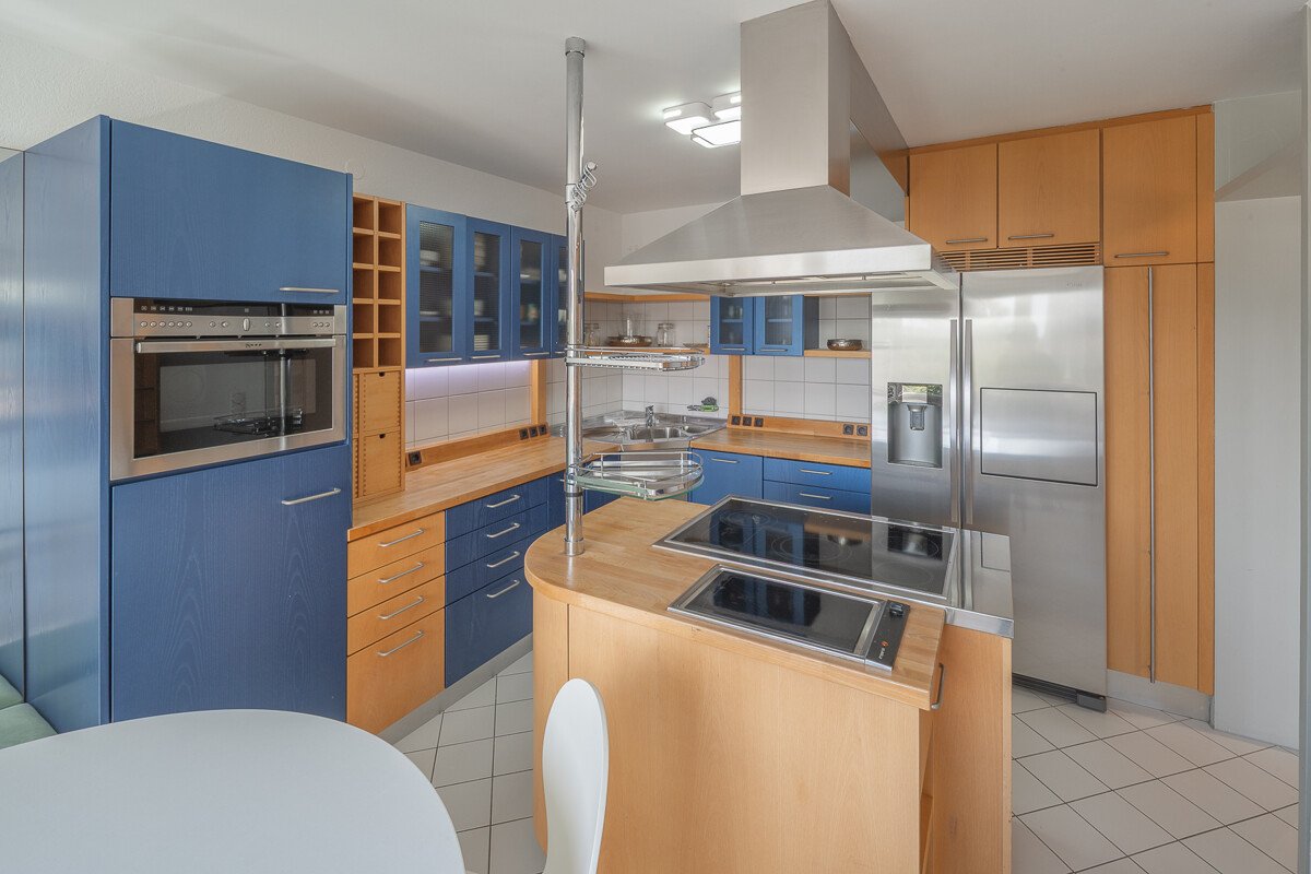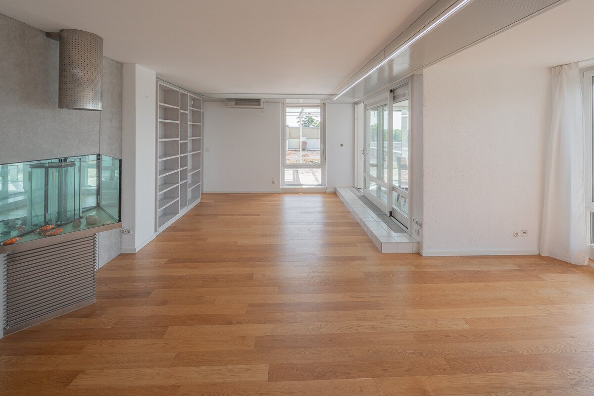Der interessante Grundriss im 4. Obergeschoss begeistert mit sehr hellen und großzügigen Räumen sowie einem einladenden Wintergarten, der Ihnen und Ihrer Familie zusätzlichen Wohnkomfort bietet. Ein weiteres Highlight ist die hochwertige Einbauküche mit Markengeräten von Siemens und Neff sowie einer praktischen Kochinsel. Die durchweg hochwertige Ausstattung umfasst Parkettböden, elektrische Jalousien und klimatisierte Räume.