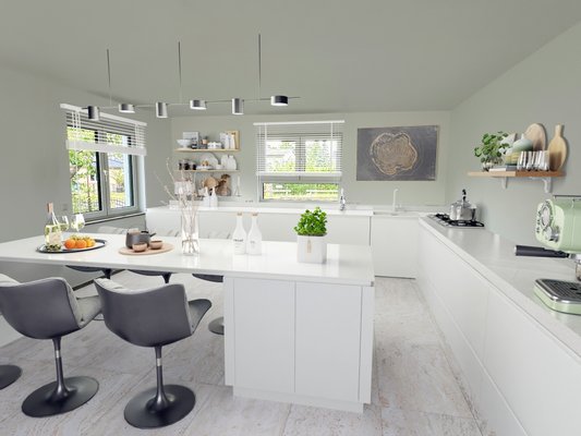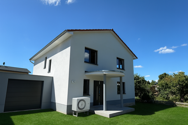 Für wohlige Wärme sorgt die Fußbodenheizung, betrieben durch eine effiziente Luft-Wärmepumpe, die in allen Räumen ein angenehmes Wohnklima schafft. Hochwertige 3-fach verglaste Kunststofffenster tragen zur hervorragenden Energieeffizienz und zum optimalen Schallschutz bei.