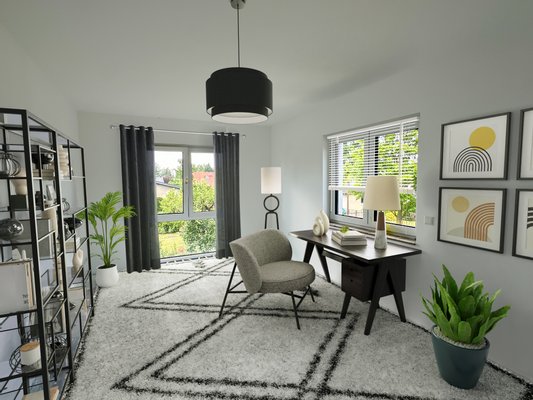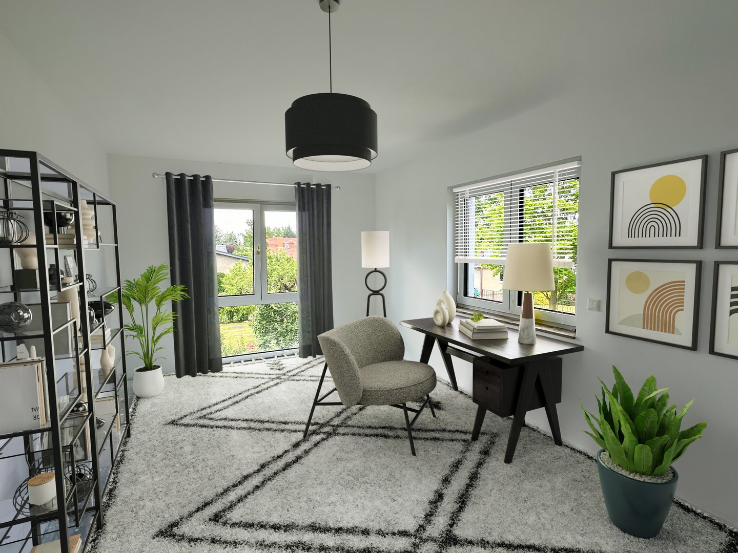 Mit insgesamt 5 Zimmern, einem großzügigen Raum im Erdgeschoss sowie vier weiteren Zimmern im Obergeschoss, schaffen die Häuser viel Platz für individuelle Wohnideen. Im Obergeschoss sorgen zwei stilvolle Badezimmer für höchsten Komfort: Eines mit moderner Dusche, das andere mit einladender Badewanne, perfekt zum Entspannen nach einem langen Tag. Ein zusätzliches Gäste-WC im Erdgeschoss erhöht die Alltagstauglichkeit.