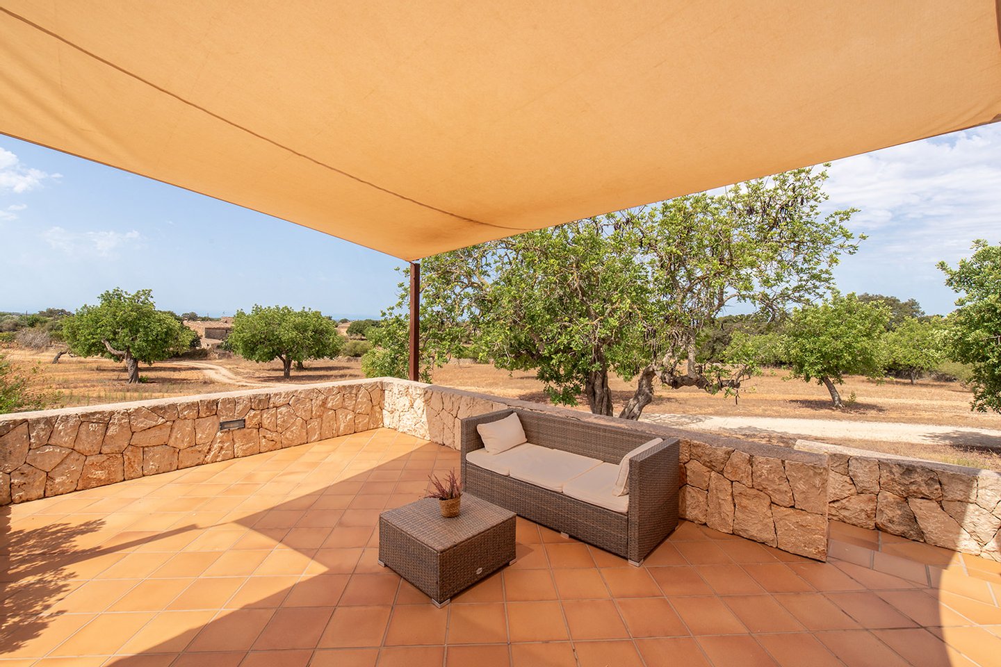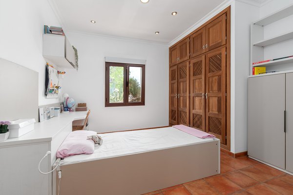 Das Obergeschoss verfügt über ein zusätzliches Schlafzimmer, ein kompaktes Büro sowie eine großzügige Terrasse mit atemberaubendem Weitblick – an klaren Tagen kann man sogar die Insel Cabrera sehen.