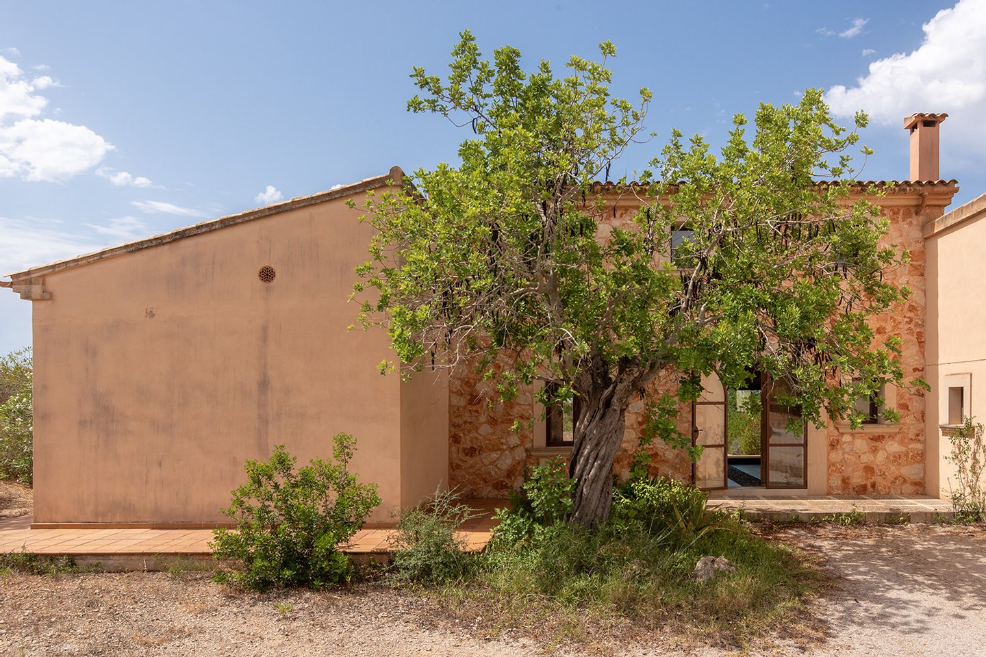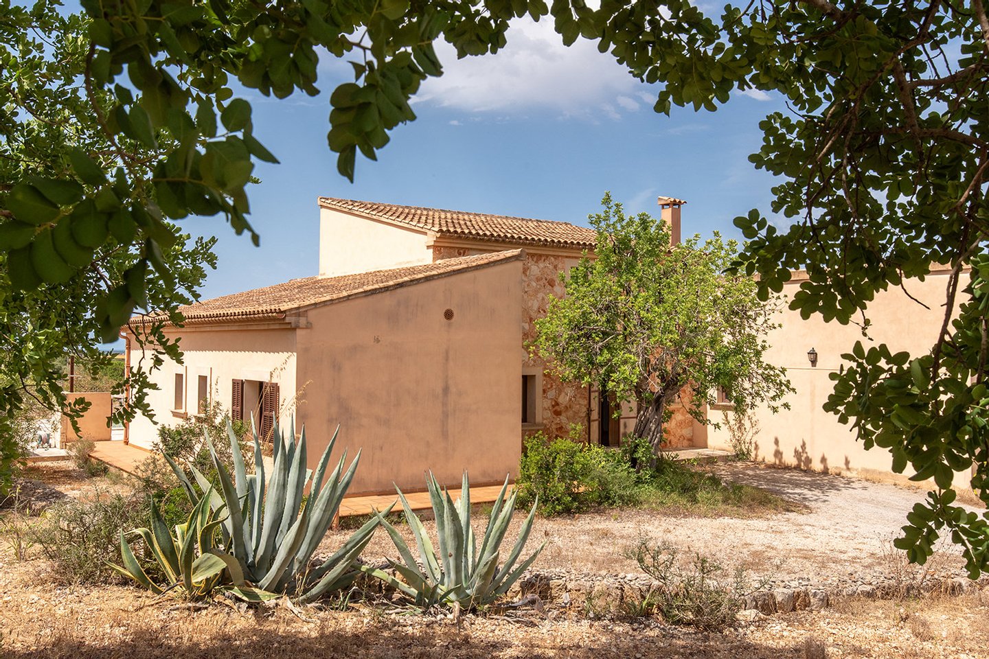 Diese wunderschöne Finca im traditionellen mediterranen Stil liegt eingebettet in die sanfte Hügellandschaft rund um Cas Concos. Von hier eröffnet sich ein traumhafter Blick über die umliegenden Berge bis hin zum charmanten Dorf Cas Concos.