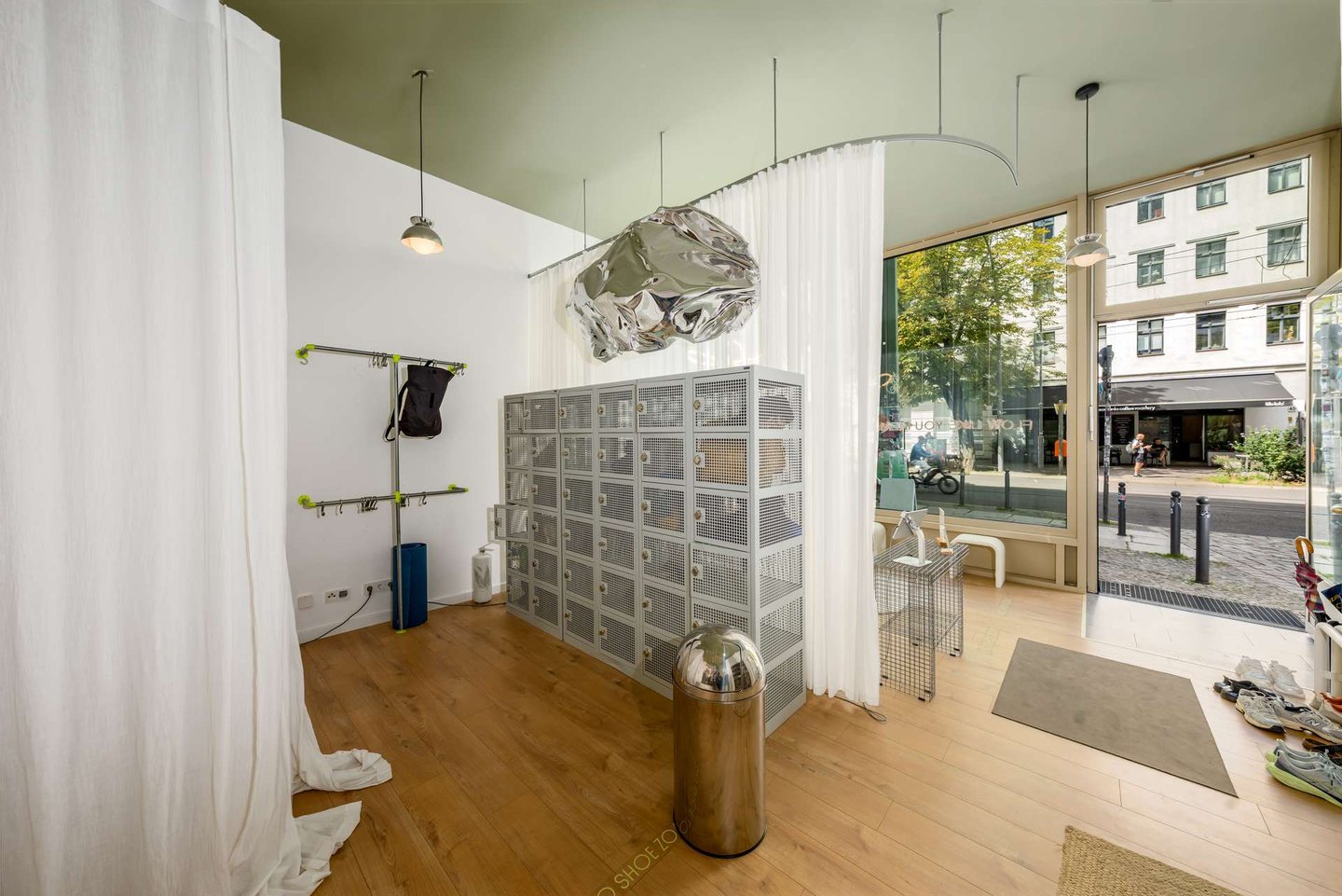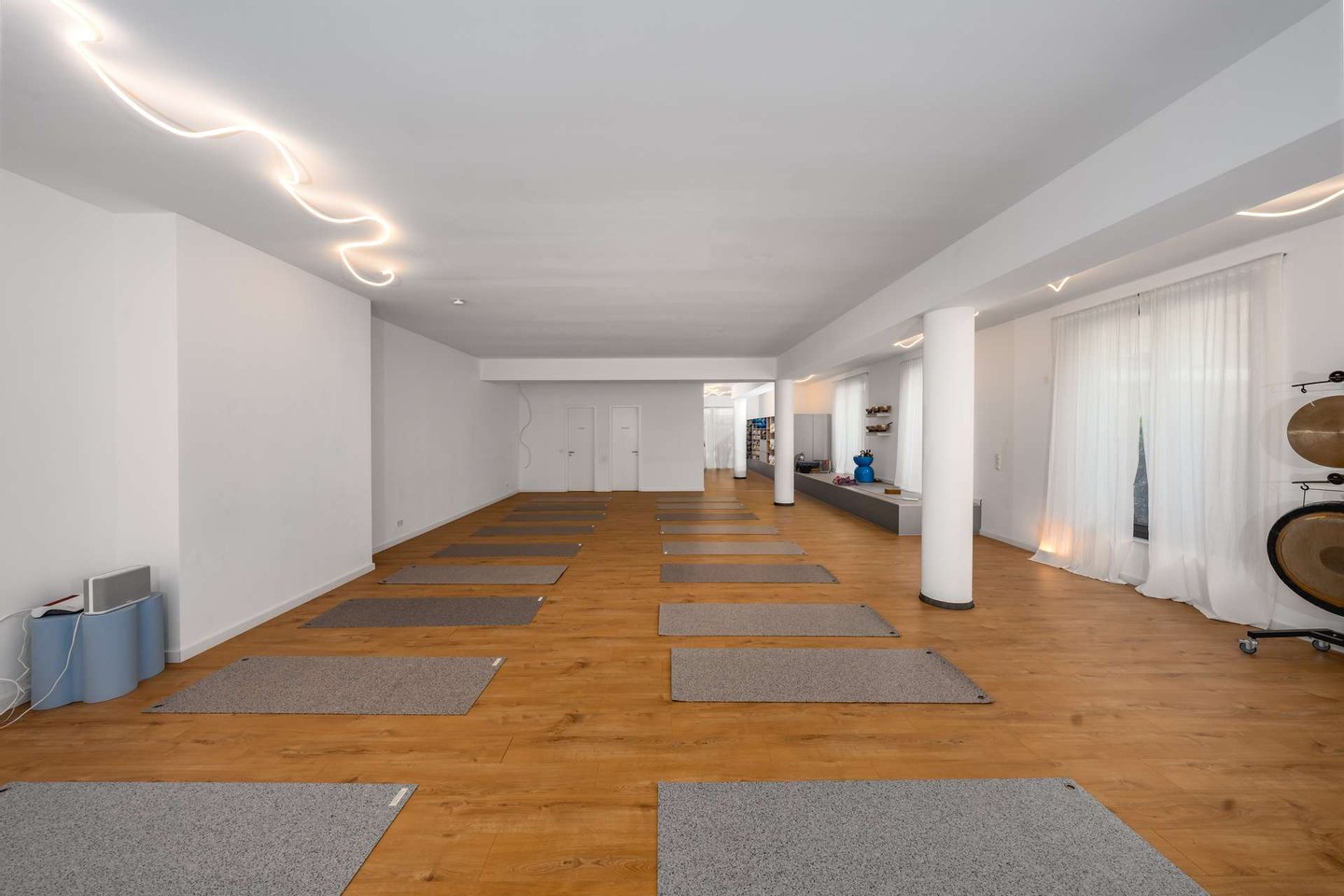 Die Gewerbefläche umfasst ca. 178,80 m² und erstreckt sich über die gesamte Breite des Ladens mit einer raumhohen Schaufensterfront zur Kastanienallee. Im hinteren Bereich sorgen zusätzliche Fenster zum Innenhof für eine lichtdurchflutete Arbeitsatmosphäre. Eine kleine Teeküche sowie ein WC sind ebenfalls im hinteren Ladenbereich vorhanden. Die Ausstattung entspricht dem gehobenen Standard des Projekts: Hochwertige Fliesenbeläge und eine Fußbodenheizung garantieren angenehme Wärme im Winter. Zur Einheit gehören außerdem zwei Tiefgaragenstellplätze sowie eine Kellereinheit. Aktuell wird die Fläche als Yoga-Studio genutzt.