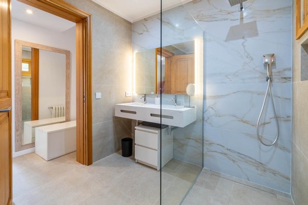 Schon bei der Ankunft hinterlässt das elegante Design der Villa inmitten der atemberaubenden Umgebung einen bleibenden Eindruck. Die großzügigen Innenräume sind von natürlichem Licht durchflutet, und große Fenster rahmen die spektakulären Ausblicke auf das historische Städtchen und die umliegenden Berge ein. Jeder Raum wurde mit Liebe zum Detail gestaltet und bietet eine Atmosphäre von anspruchsvollem Komfort.