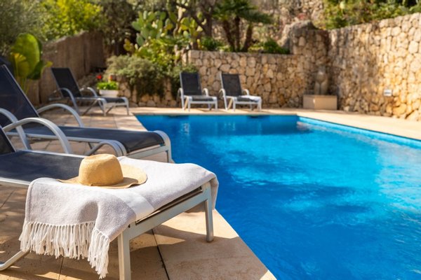Die weitläufigen Außenbereiche verfügen über einen privaten Pool, üppige Gärten und mehrere Terrassen – ideal um Gäste zu unterhalten oder um einfach die ruhige Umgebung zu genießen. Ob Sie am Pool entspannen, im Freien speisen oder den Sonnenuntergang über dem Städtchen beobachten – diese Villa bietet das ultimative Erlebnis des Lebens im Freien.