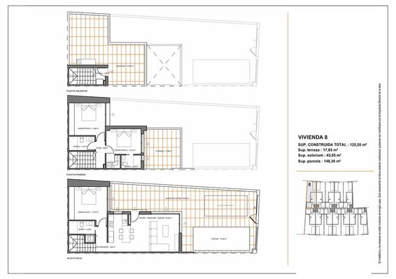 Diese modernen Reihenhaus-Villen verfügen über eine konstruierte Fläche von ca. 168 m² - 187 m² (inklusive Terrassen) mit