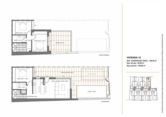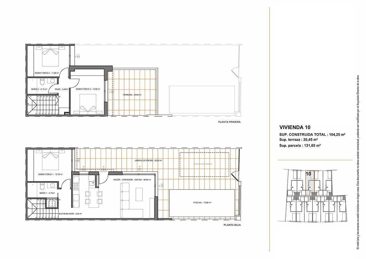 Diese modernen Reihenhaus-Villen verfügen über eine konstruierte Fläche von ca. 125 m² - 130 m² (inklusive Terrassen) mit