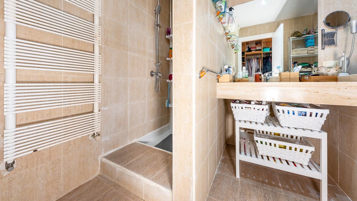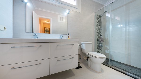 Im Erdgeschoss befinden sich 3 Schlafzimmer mit Einbauschränken und Terrassen, eines davon mit Bad en suite. Die Aufteilung ist so konzipiert, dass man das ganze Jahr über den mediterranen Lebensstil genießen kann. Von der großzügigen Dachterrasse genießt man einen fantastischen Panoramablick auf das Meer in Richtung Puerto Portals. Die Immobilie wurde laufend modernisiert.