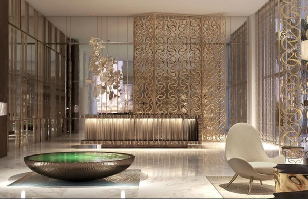 Erfreuen Sie sich an der Vielfalt der Einrichtungen, darunter eine Einkaufspromenade mit Geschäften und Cafés, On-Site-Restaurants und Cafés, einem Concierge-Service und 24-Stunden-Sicherheit. Der Empfangsdienst, das Valet-Parken und die reservierten Parkplätze sorgen für Bequemlichkeit und Komfort. Designer-Interieurs von Elie Saab schmücken die Wohnräume, die mit bodentiefen Fenstern und privaten Balkonen ausgestattet sind.