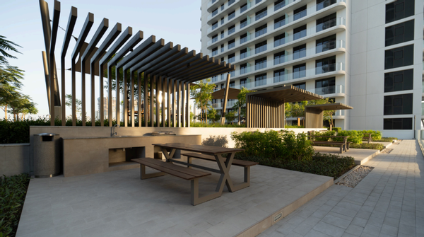 Die üppig gestalteten Außenbereiche bieten zahlreiche Möglichkeiten zur Entspannung. Ihr Auto parken Sie sicher in der Tiefgarage. Ein 24/7-Sicherheits- und Concierge-Service sorgt für Ihre Sicherheit und Annehmlichkeiten. Lust auf BBQ? Nutzen Sie die Grillplätze für gesellige Abende im Freien. Joggingwege laden zu sportlichen Aktivitäten inmitten schöner Gärten ein. Ihre Kinder können sich in den Parks austoben. Willkommen zu Ihrem persönlichen Paradies am Strand!