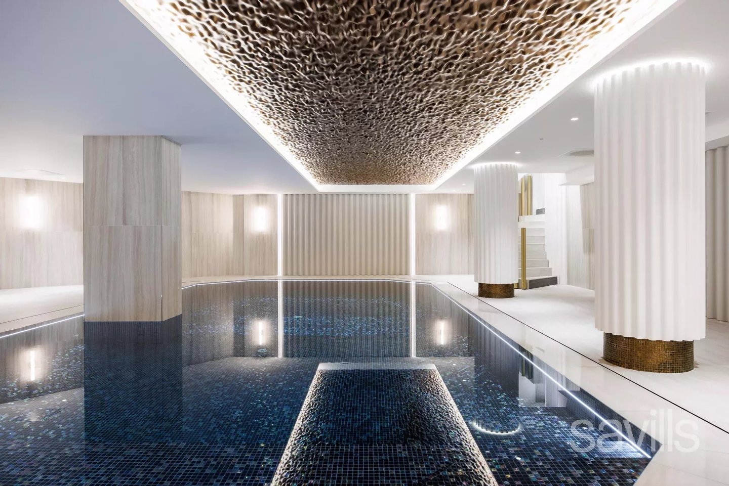 Die Bewohner des Gebäudes profitieren von einem 24/7-Empfang mit Sicherheitsdienst sowie exklusivem Zugang zu einem beheizten Hallenbad.