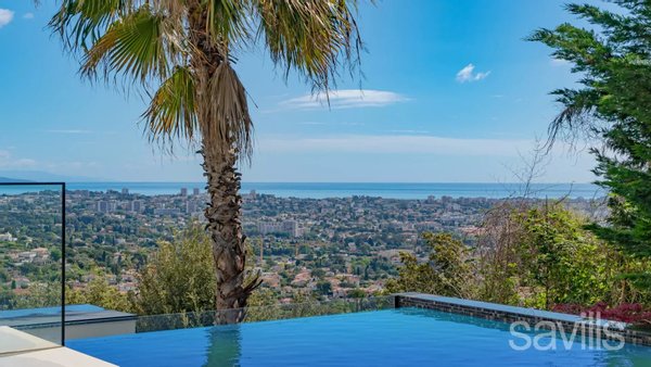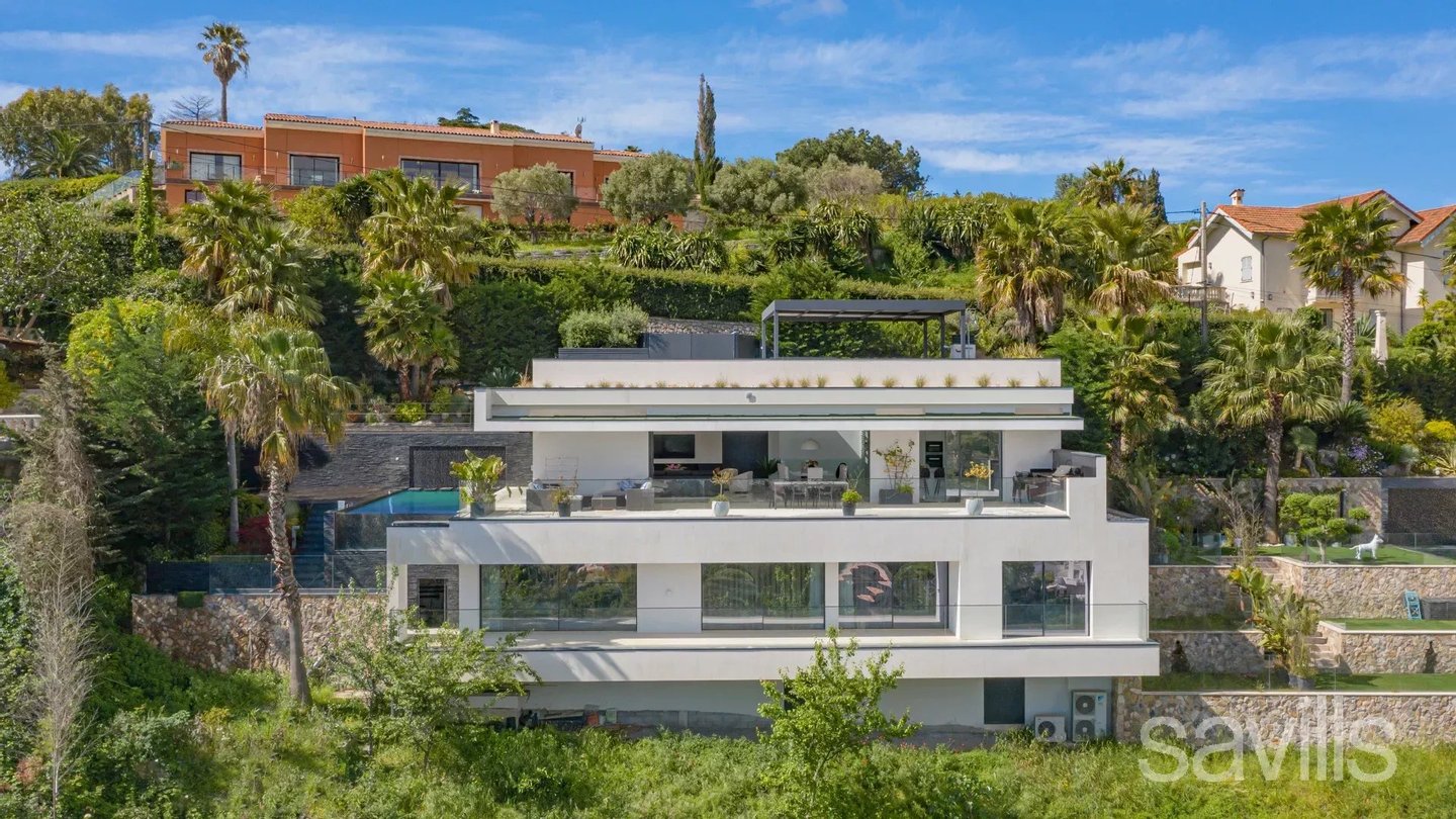 Diese erhabene, moderne Villa befindet sich auf den Höhen der beliebtesten Gegend von Super Cannes und bietet einen fantastischen Panoramablick auf das Meer und erstreckt sich über 300 m² auf nur zwei Ebenen.