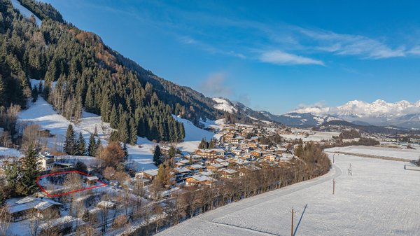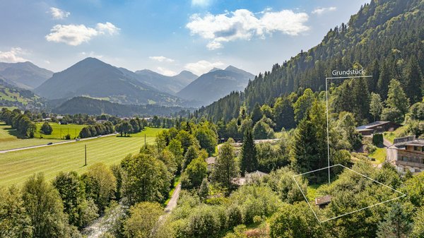 Es handelt sich um das oberste von drei nebeneinander gelegenen Grundstücken, von welchem man über die anderen hinweg einen traumhaften Ausblick auf die Kitzbüheler Bergwelt hat.