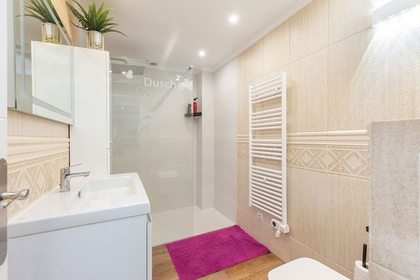 Ein besonderes Highlight der Wohnung ist die rund 45 m² große Sonnenterrasse, die direkt an den Wohnbereich anschließt. Sie bietet ausreichend Platz für einen Außen-Essbereich sowie eine gemütliche Lounge-Zone. Zusätzlich stehen ein kleiner Garten, eine geräumige überdachte Terrasse, ein separater Abstellraum sowie ein PKW-Stellplatz zur Verfügung.