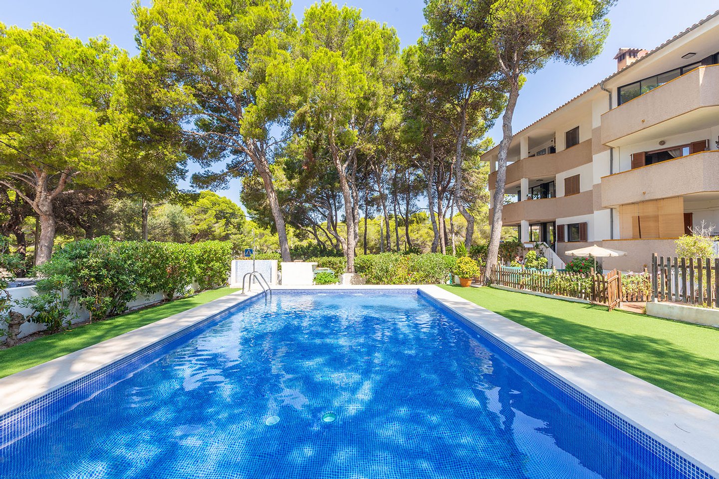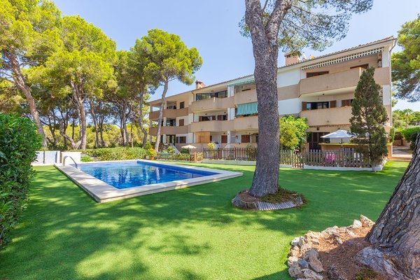 Dieses gepflegte Apartment liegt im Erdgeschoss einer ruhigen Wohnanlage in Santa Ponsa, eingebettet in eine harmonisch gestaltete Grünanlage. Den Bewohnern stehen ein Gemeinschaftspool sowie ein Gartenbereich zur Verfügung.