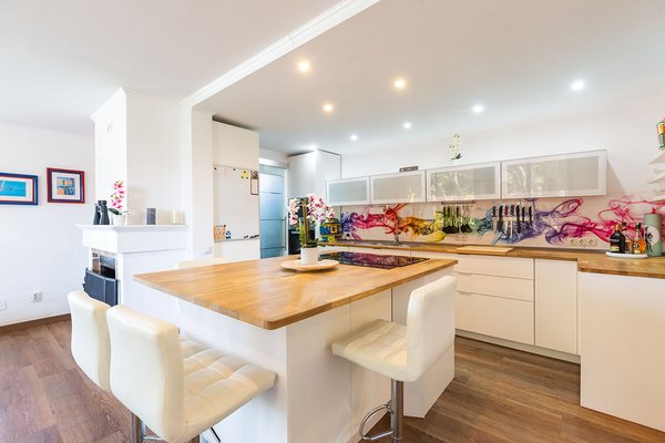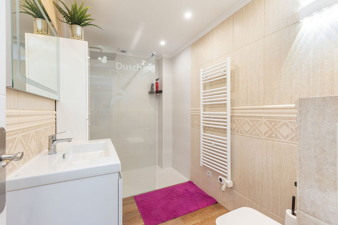 Die Wohnfläche beträgt ca. 90 m² und verteilt sich auf fünf gut geschnittene Räume. Dazu gehören drei Schlafzimmer, zwei Badezimmer sowie ein offener Wohn- und Essbereich mit integrierter moderner Küche.