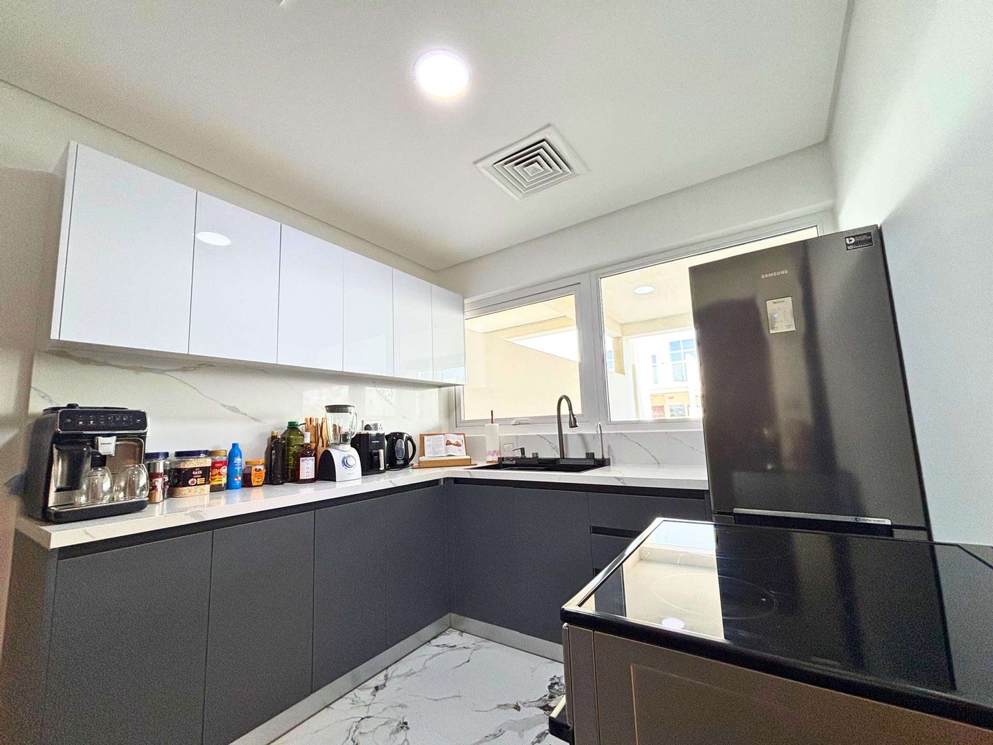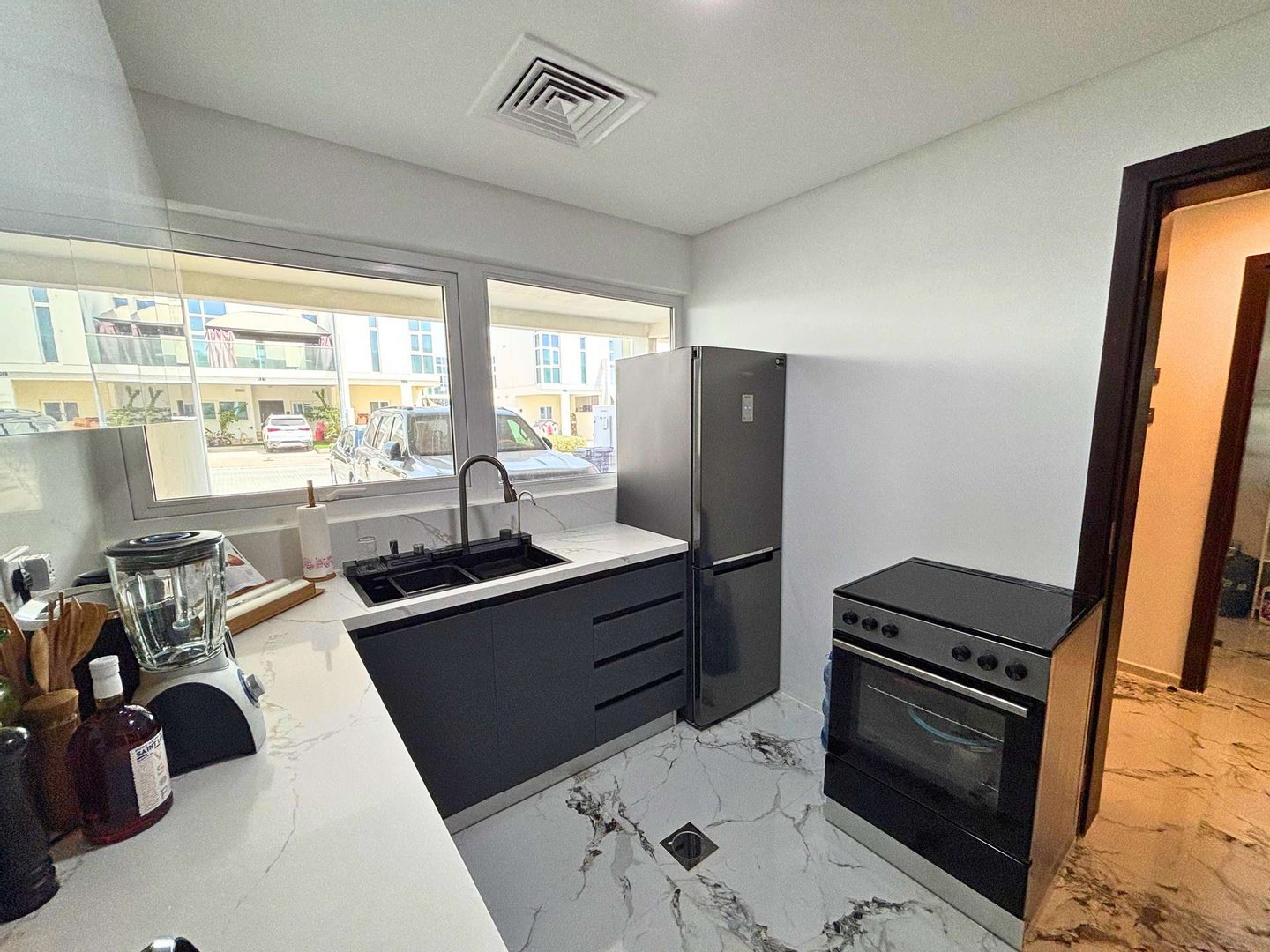 Willkommen in Ihrem neuen Zuhause in Damac Hills 2 Pacifica! Dieses wunderschöne Reihenhaus erwartet Sie in einer tollen, familienfreundlichen Community. Das Haus wurde kernsaniert und mit hochwertigen Materialien renoviert. Beim Betreten werden Sie von einem großzügigen Wohnbereich empfangen, der viel Platz für gemütliche Abende mit Ihrer Familie bietet. Die offene und geschlossene Küche lädt zum Kochen und gemeinsamen Essen ein.