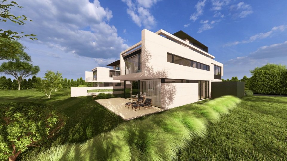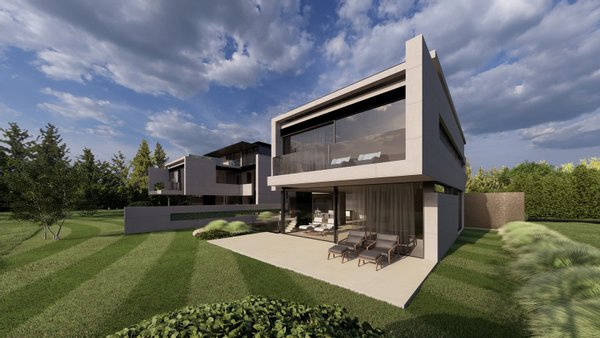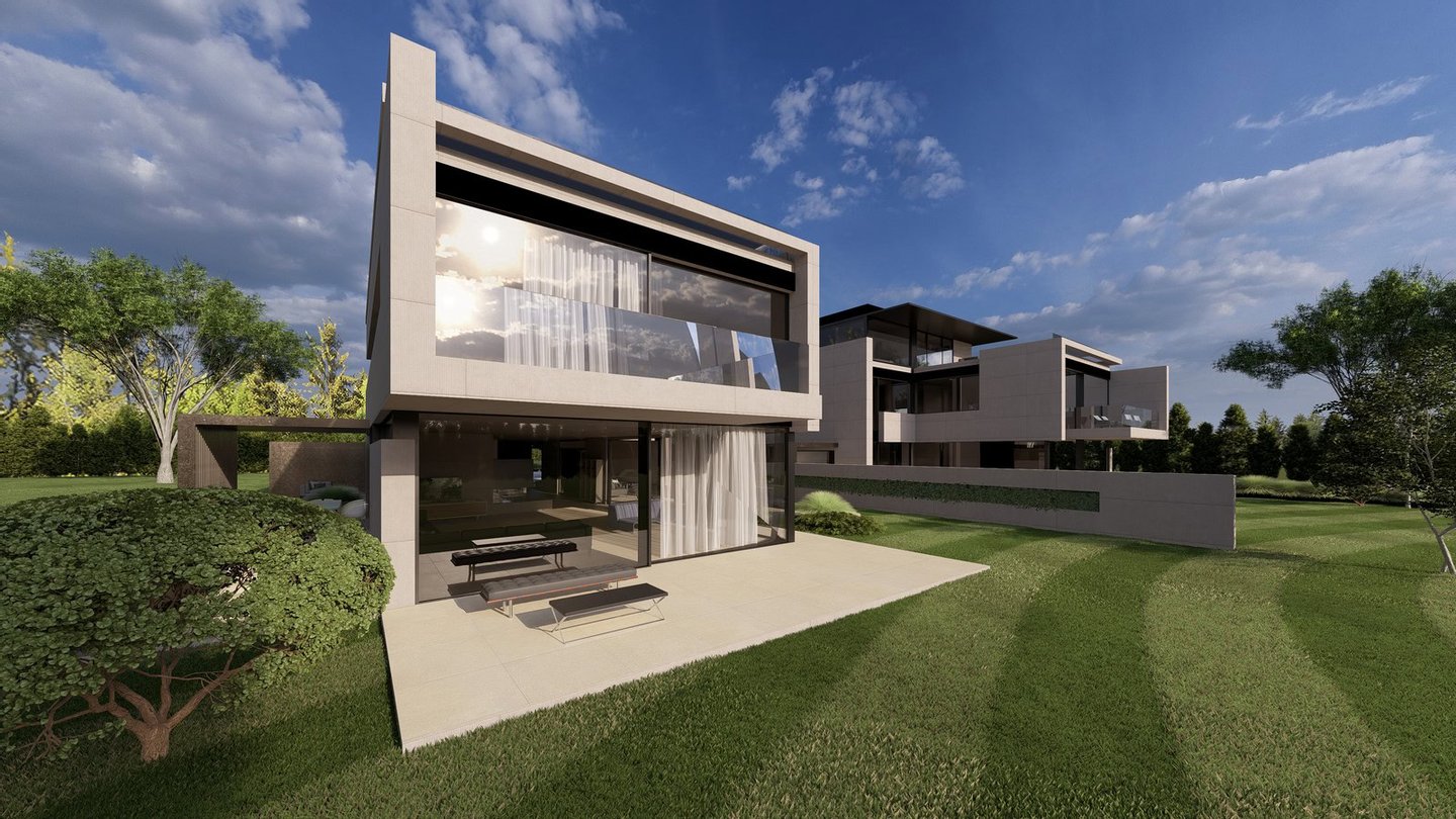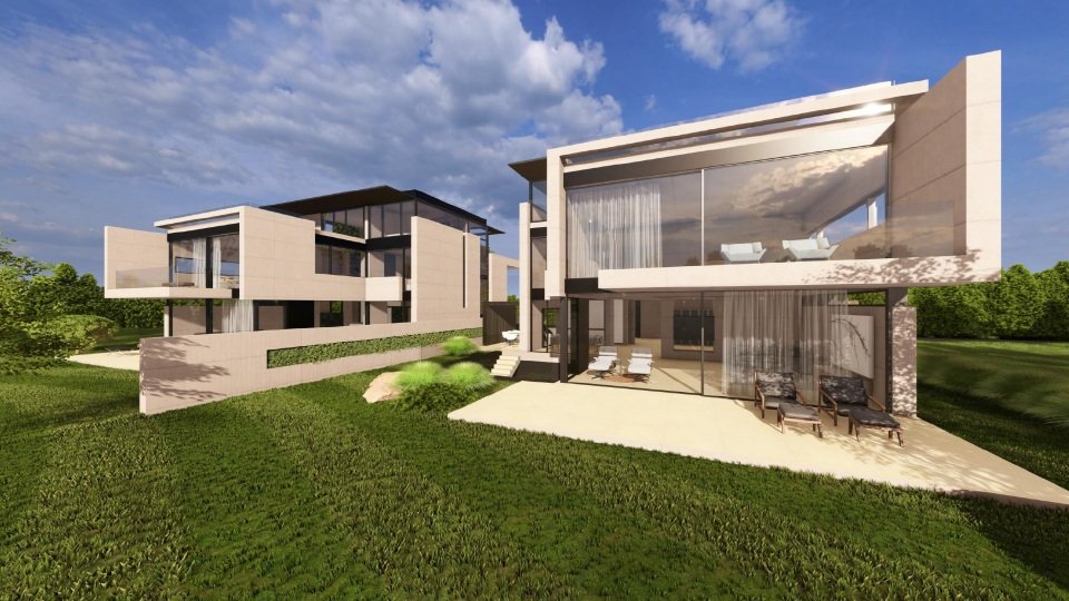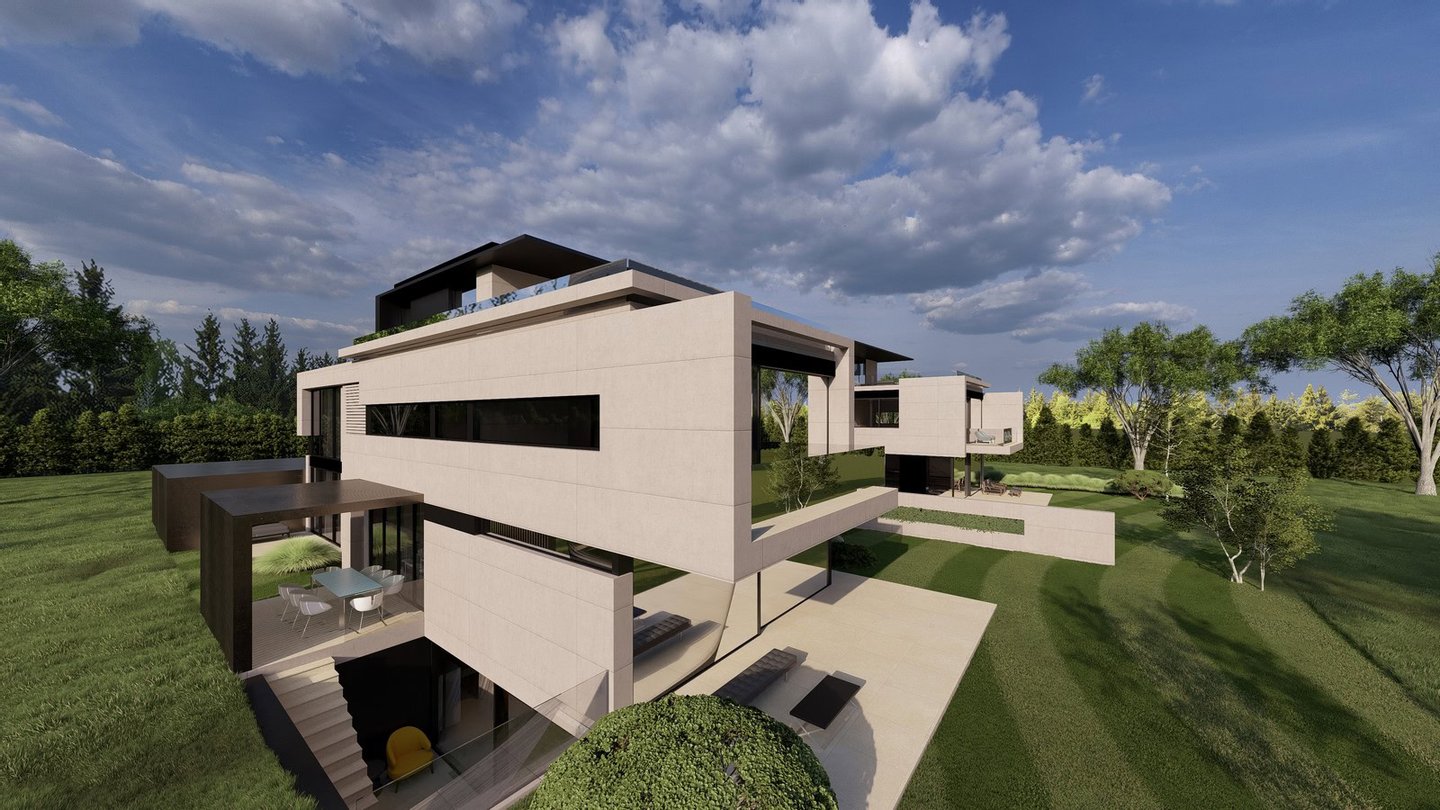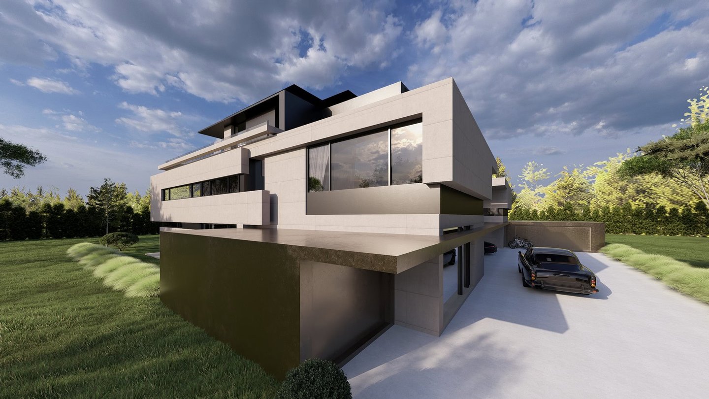 Die geplante Villa ist Teil eines eleganten Ensembles aus zwei Schwestervillen, das exklusives Wohnen in bester Nachbarschaft ermöglicht. Sie stellen ein architektonisch harmonisch aufeinander abgestimmtes Doppelstück des renommierten Architekturbüros Avantecture dar. Während eine Villa vom Verkäufer selbst bewohnt wird, steht das Pendant einmalig zum Verkauf.