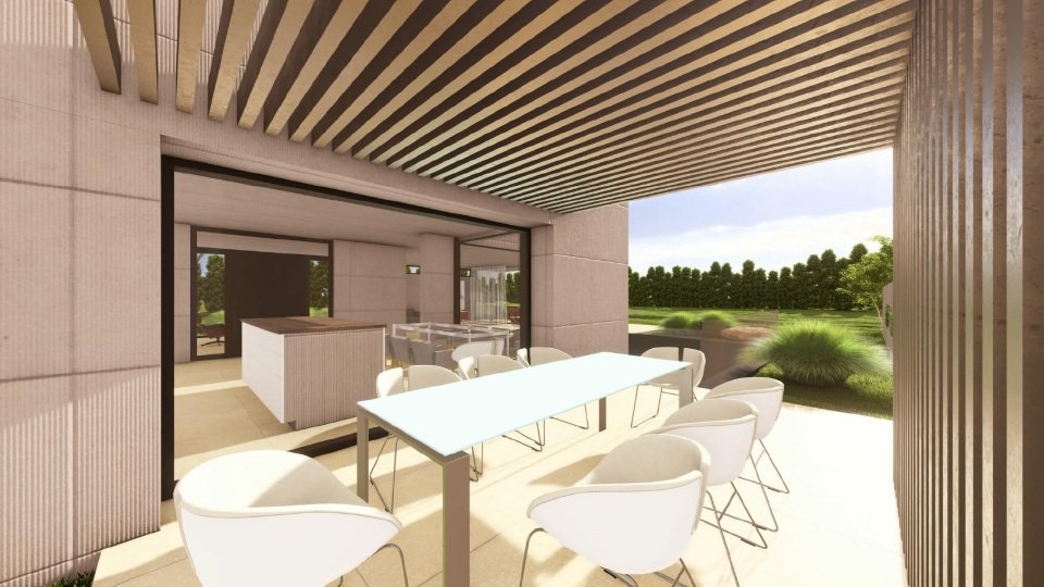 Auf rund 465 m² Wohnfläche entfaltet sich ein modernes, lichtdurchflutetes Zuhause mit großzügigen Deckenhöhen, rahmenlosen Fensterfronten und klaren Linien. Der Entwurf verbindet zeitlose Eleganz mit moderner Funktionalität und setzt damit neue Maßstäbe für anspruchsvolles Wohnen.