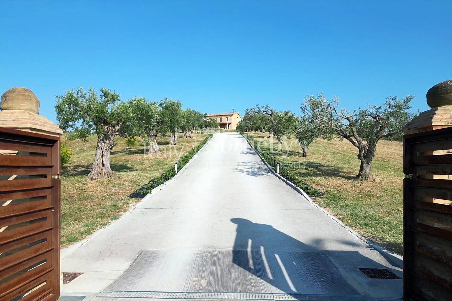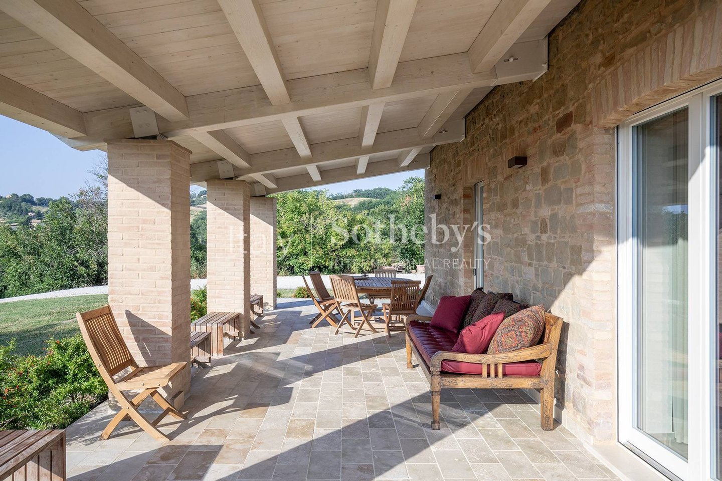 Eingebettet in die sanften Hügel der Marken, in einer geschützten, aber dennoch gut angebundenen Lage zu allen wichtigen Dienstleistungen, erhebt sich dieser exklusive Neubaukomplex in Bioarchitektur, entworfen, um zeitgenössische Eleganz mit