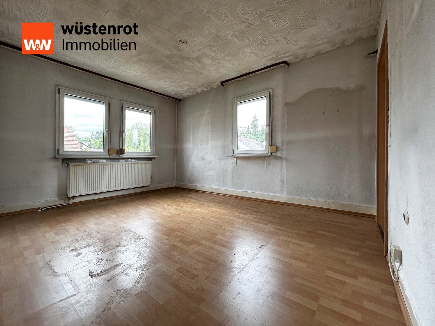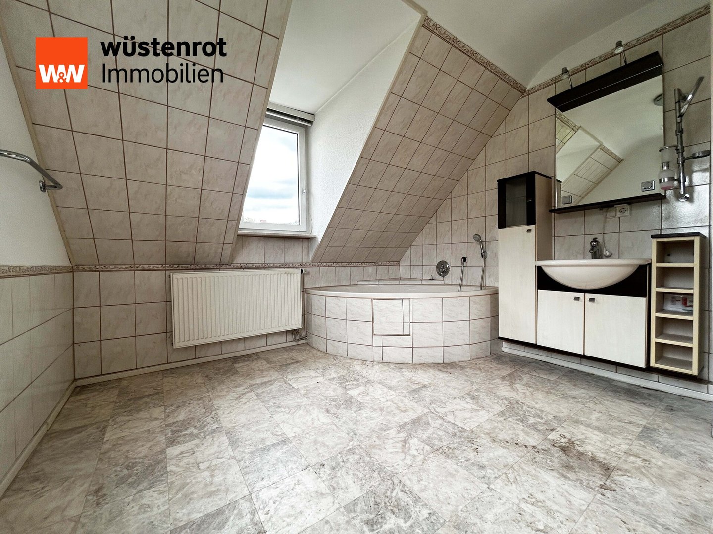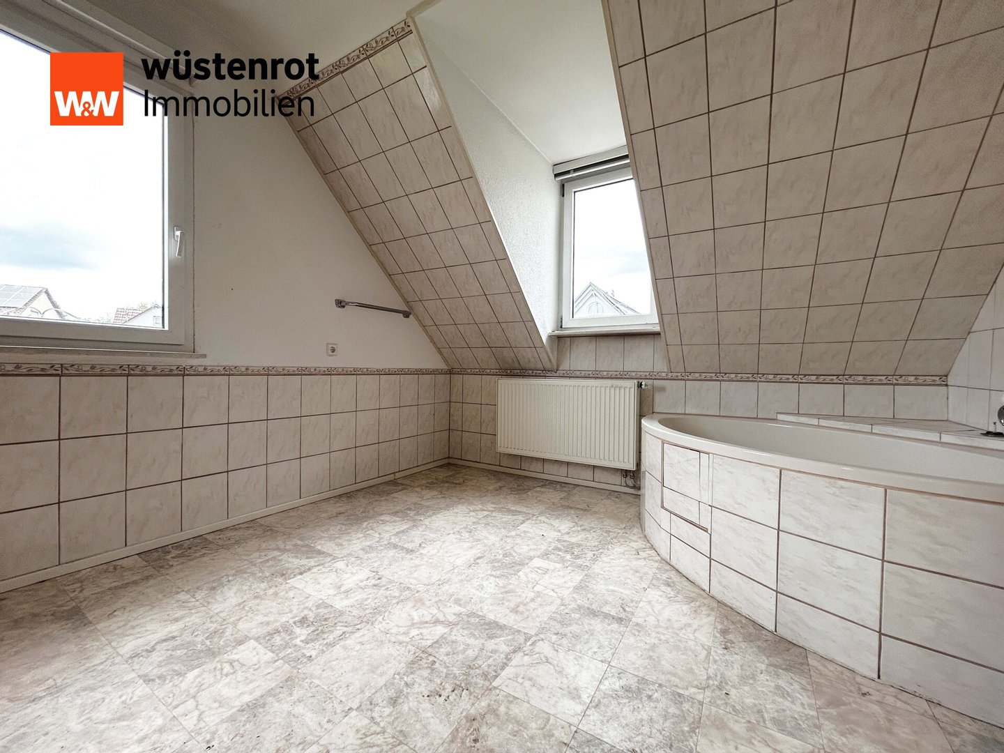 Im Obergeschoss zeigen zwei Schlafzimmer ihren ursprünglichen Charme. Unter den Dachschrägen offenbaren sie Gemütlichkeit. Fenster lenken den Blick weit hinaus in den Himmel. Das größere der beiden Zimmer bietet mit knapp 14 m² Raum für eine individuelle Gestaltung. Das zweite mit etwa 13 m² eignet sich als Kinderzimmer, Arbeitsraum oder ruhiger Rückzugsort. Das Bad mit Wanne lädt nach einem langen Tag zur Entspannung ein - auch wenn es nach heutigem Design modernisiert werden könnte. Ein weiteres WC, ebenfalls auf einer Zwischenebene gelegen, bringt zusätzlichen Komfort.