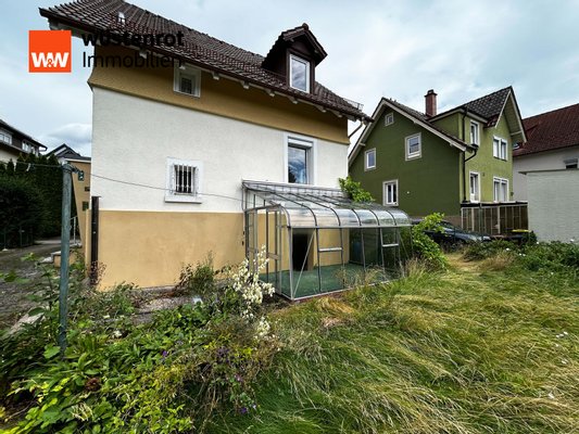 Der Garten liegt hinter dem Haus und öffnet sich nach Westen. Er zeigt sich aktuell verwildert, doch gerade darin steckt sein Potenzial. Mit etwas Fantasie lässt sich hier ein grüner Rückzugsort gestalten, ein Spielbereich für Kinder oder eine Oase für entspannte Sommerabende. Durch den Wintergarten, der direkt an den Garten anschließt, entsteht ein fließender Übergang zwischen innen und außen.