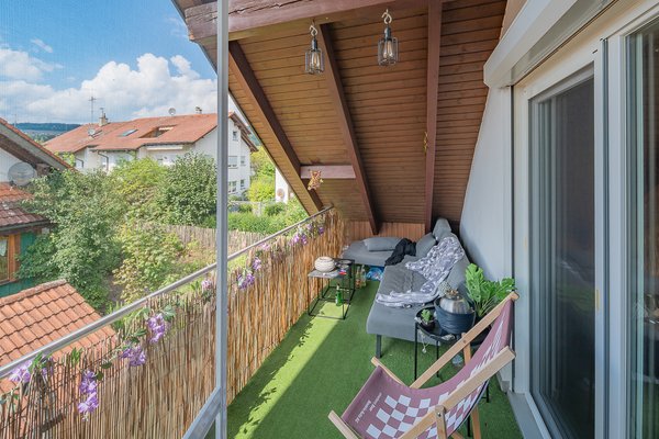 Als Dachgeschosswohnung bietet sie nicht nur erhöhte Privatsphäre, sondern auch einen wunderschönen Ausblick auf die Umgebung.