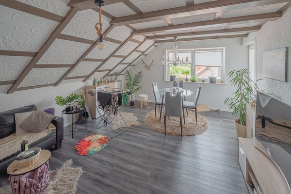 Diese Dachgeschosswohnung am Ortsrand von Lauchringen bietet ein einzigartiges Wohnerlebnis und eine ruhige Rückzugsmöglichkeit inmitten einer malerischen Umgebung.