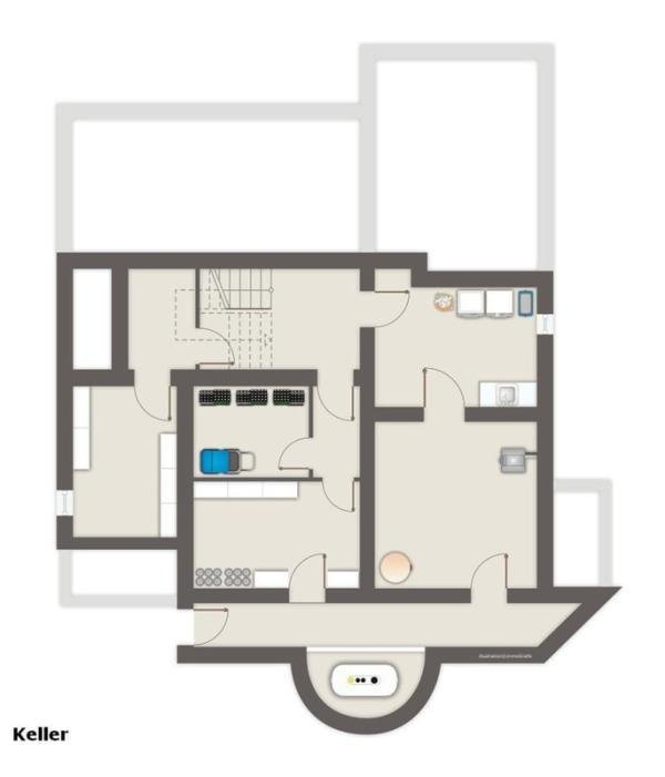 Souterrain: 1 Zimmer - Appartement als Einliegerwohnung, Bad.