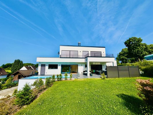 Herzlich willkommen in Ihrem Traumhaus! Dieses freistehende Einfamilienhaus bietet eine luxuriöse Ausstattung, die keine Wünsche offen lässt. Entspannen Sie in Ihrer eigenen Sauna oder erfrischen Sie sich im Außenpool. Die Luxone Smart Home Gebäudetechnik sorgt für Komfort und Sicherheit in Ihrem Zuhause.