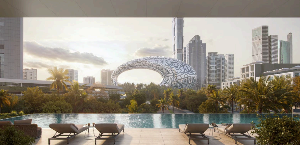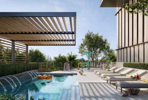 Der private Sky-Garten bietet eine ruhige Oase mit üppigem Grün und einem atemberaubenden Blick über die Stadt. Der Infinity-Sky-Pool lädt zu einem exklusiven Badeerlebnis ein und bietet einen Panoramablick auf die Skyline von Dubai. Familien können sich im separaten Familienpool und auf dem Kinderspielplatz vergnügen, der auch mit einem schattigen Poolbereich und Wasserspielmöglichkeiten ausgestattet ist.