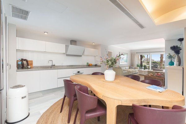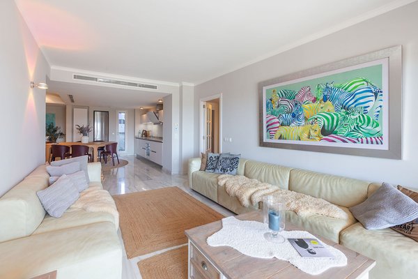 In bester Wohnlage direkt an der Strandpromenade von Portixol und nur wenige Gehminuten vom historischen Zentrum Palmas entfernt, befindet sich diese exklusive Luxuswohnung in einer hochwertigen Apartmentresidenz. Die Anlage bietet ihren Bewohnern eine großzügige Sonnenterrasse, gepflegte Gartenflächen, einen Paddle-Platz sowie einen einladenden Swimmingpool zur gemeinsamen Nutzung.