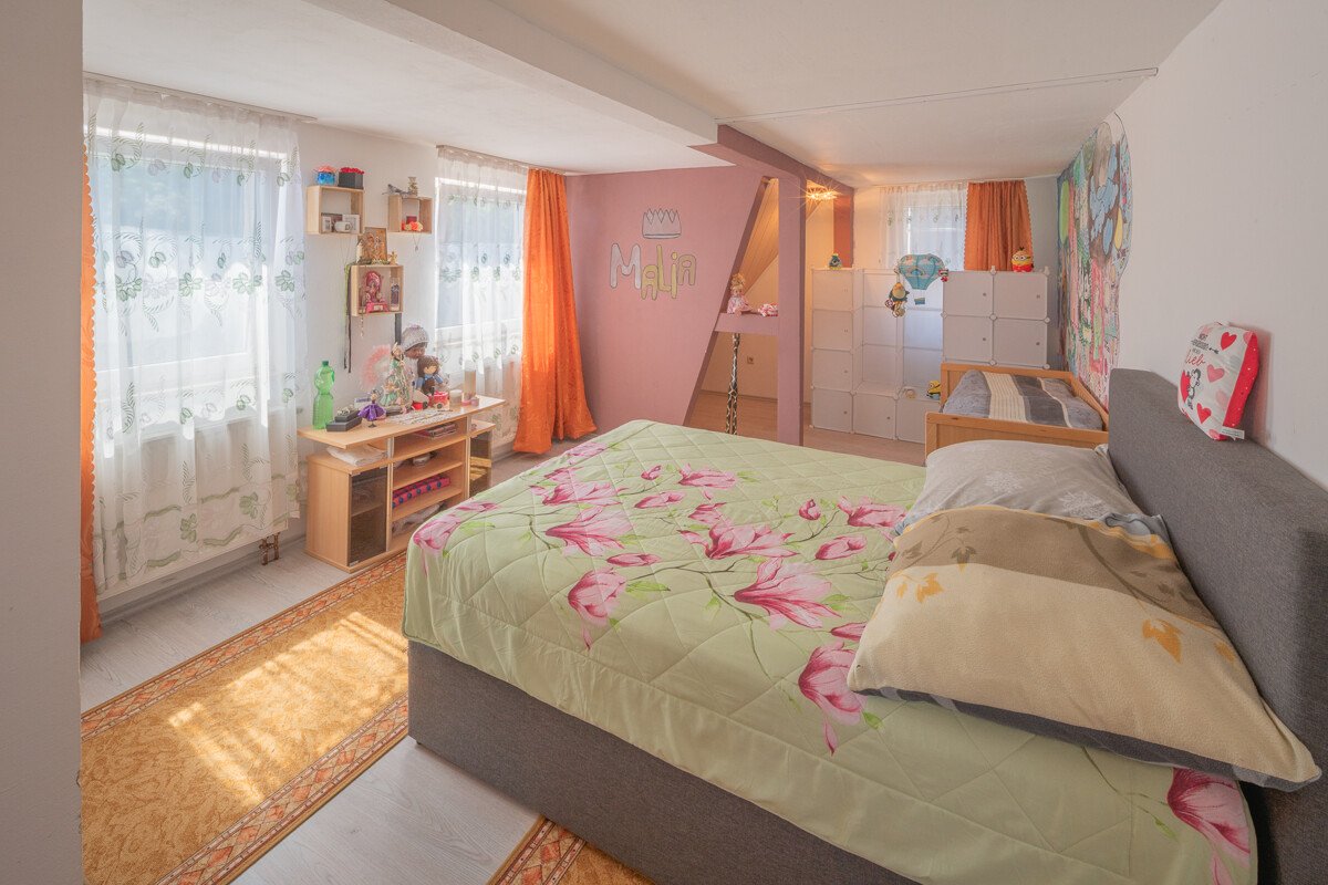 Die insgesamt 6,5 Zimmer verteilen sich geschickt über drei Ebenen. Im Erdgeschoss erwartet Sie ein großes Wohnzimmer mit angeschlossenem Bad und WC. Das erste Obergeschoss umfasst drei individuell nutzbare Zimmer. Das Dachgeschoss bietet zusätzlich 2,5 Zimmer und vielfältige Nutzungsmöglichkeiten.