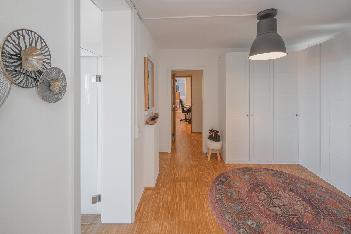Mit einer Wohn- und Nutzfläche von ca. 246 m² bietet diese 4 Zimmer Wohnung eine helle, moderne und einladende Atmosphäre. Der offene und lichtdurchflutete Grundriss im 4. Obergeschoss ermöglicht es Ihnen, all Ihre Wohnträume zu verwirklichen. Die hohen Decken und großen Fenster fluten den Raum mit natürlichem Licht und schaffen ein Gefühl von Weite.