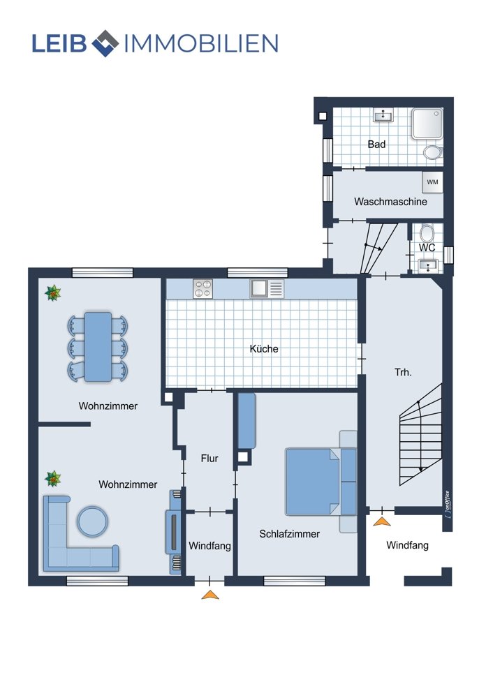 Das Haus ist aufgeteilt in drei Wohnungen wird derzeit aber gesamt genutzt.