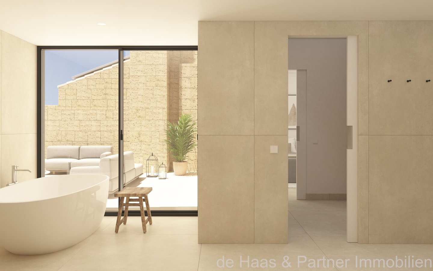 Weitere Ausstattungsmerkmale: Endesa Strom, Stadtwasser, Fahrstuhl, per App steuerbares Klimaanlagensystem w/k nicht sichtbar in der Decke verbaut mit einer Aktivbelüftung gegen Schimmelbildung, sturmfeste Verdunklungsrollos, Unterputzdosen für Smart-Home-System, Italienische Designerküche mit lackierten Oberflächen und Miele Geräten, Osmoseanlage, 1,20 m x 1,20 m Fliesenspiegel, rutschfeste Fliesen in den Bädern, als auch auf den Terrassen, Villeroy & Boch Sanitärkeramik, elektrische Handtuchhalter, sowie Schiebetüren in den Bädern, Aluminiumfenster mit Wärmeschutzverglasung und Sichtschutz von außen, SAT-TV Internet, Wärmepumpenheizung-Fußbodenheizung.