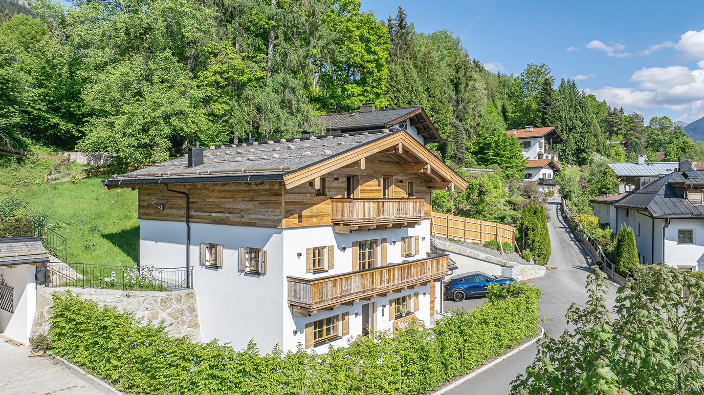 Aufgrund dieser exponierten Toplage liegen alle anderen Häuser tiefer als das Objekt und man blickt darüber hinweg auf die Gamsstadt, den Hahnenkamm bis hin zum Wilden Kaiser. Das Stadtzentrum ist in 8 Fußminuten erreichbar. Der Skilift Hornbahn in ca. 5 Minuten.