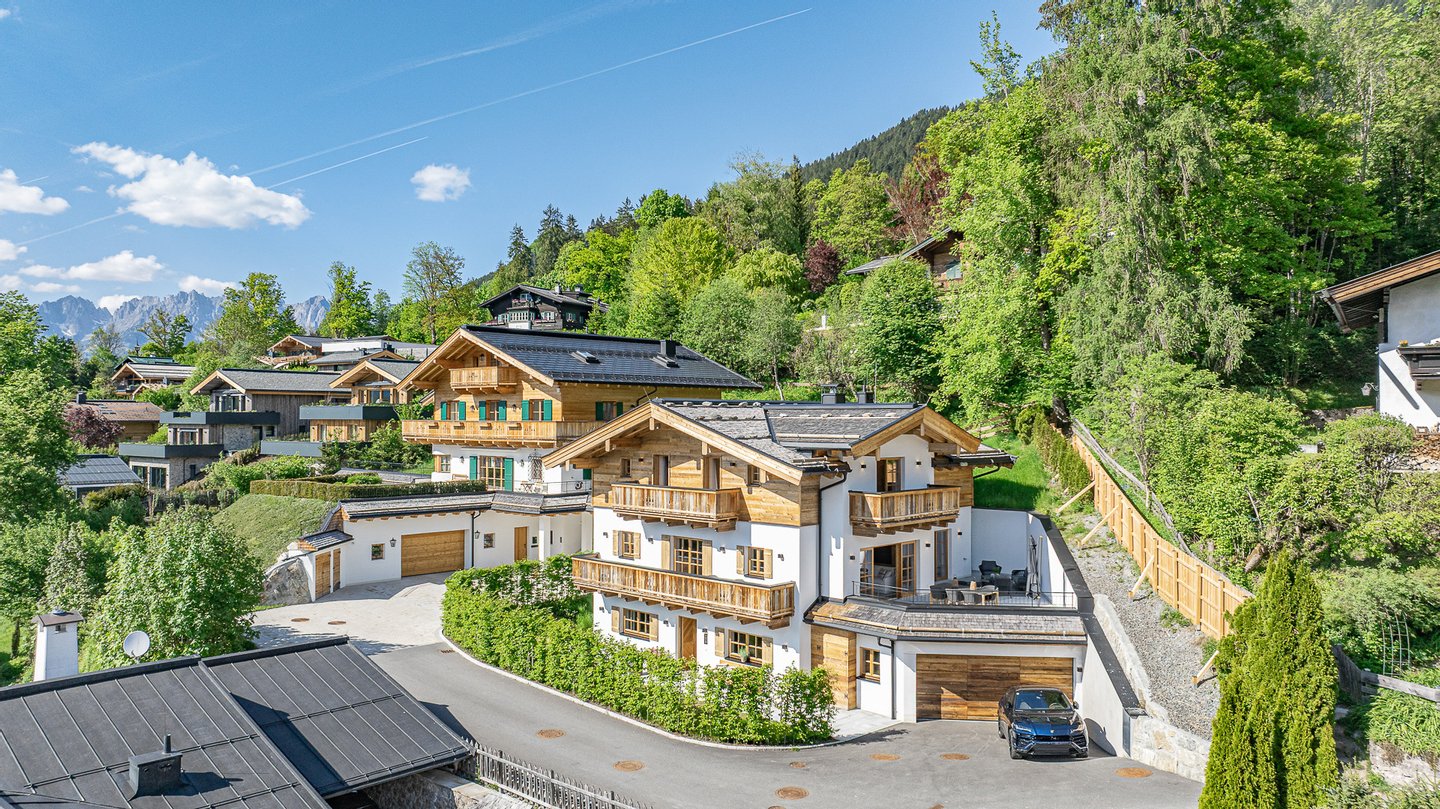Diese luxuriöse Neubauvilla befindet sich in einer Sackgasse in der obersten Reihe des Sonnbergs in traumhafter Ruhelage von Kitzbühel.