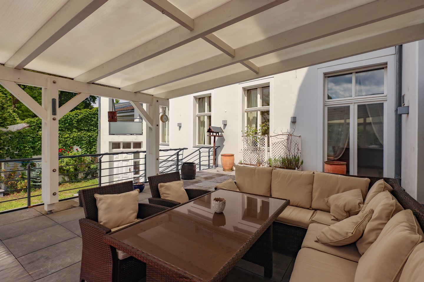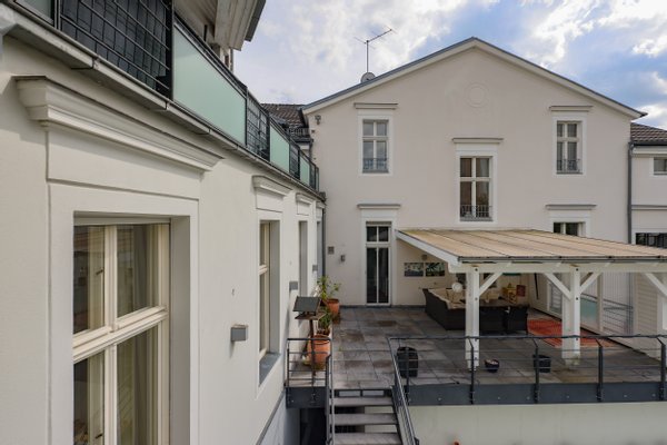 Im Seitenflügel befinde sich eine Einliegerwohnung mit Küche, Wohnzimmer, Schlafzimmer, Bad und Gäste- WC.