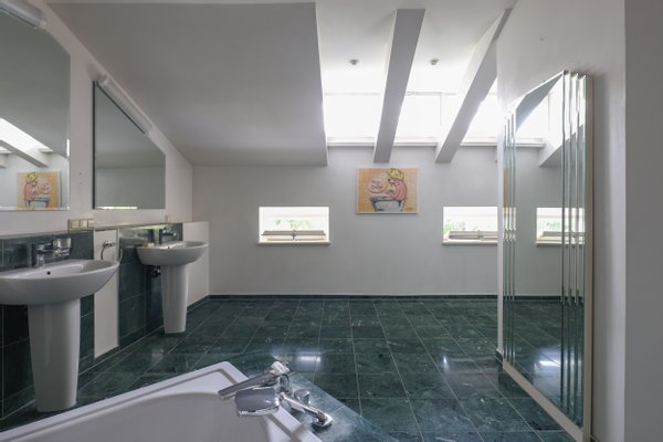 Im Haupthaus befinden sich 7 Zimmer, 3 Bäder sowie eine Sauna.