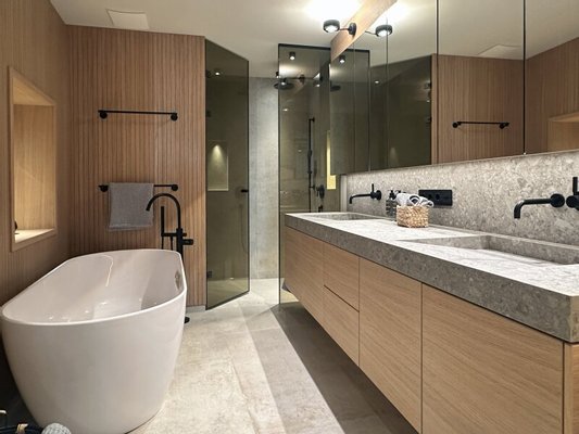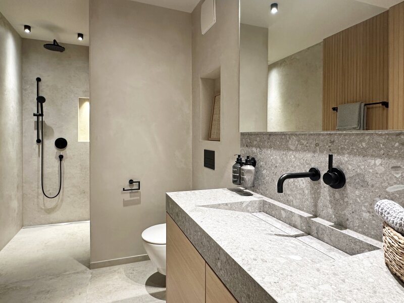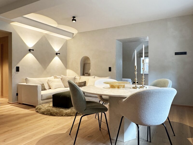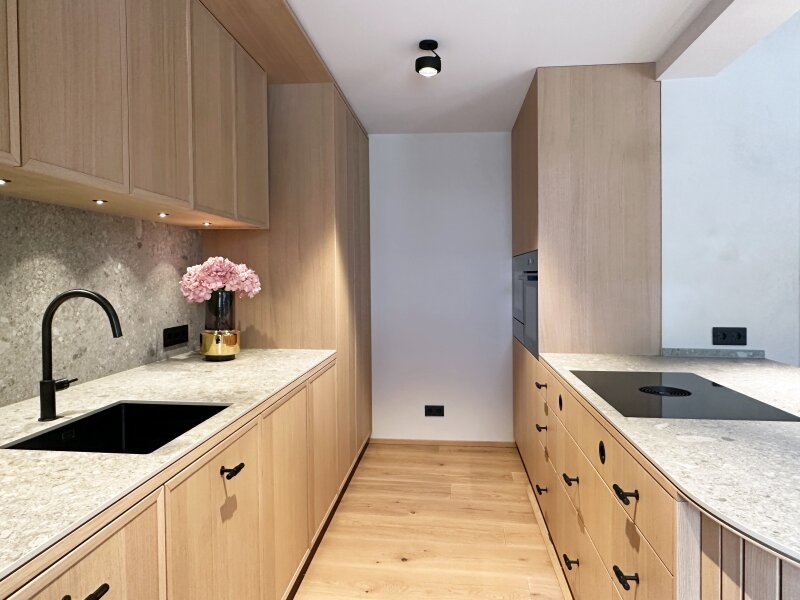 Diese Wohnung wurde komplett saniert und stellt somit einen Erstbezug dar. Nicht nur die äußerst ansprechende Optik entspricht dem Zeitgeist, es wurde bei der exklusiven Ausstattung auf hochwertige Materialen wert gelegt, Einbauten nach Maßanfertigung und neueste Technik - so hat man ein BUS-System für komfortable Smarthome-Nutzung eingebaut, Leuchten u.a. von Occhio sorgen für gute Lichtstimmung, Eichen-Landhausdielen und großformatige Feinsteinfliesen machen die Böden pflegeleicht.