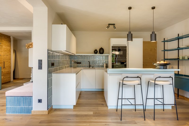 Deshalb findet sich drinnen, auf 137 m² Wohnfläche, in Farben, Formen und Möbeln wieder, was die Tiroler Bergwelt und Landschaft draußen so einzigartig macht. Natürliche Materialien, der offene, Grundriss, die farblichen Akzente – das ist frisch und klar, dezent und harmonisch, aufgeräumt behaglich und einladend entspannt.